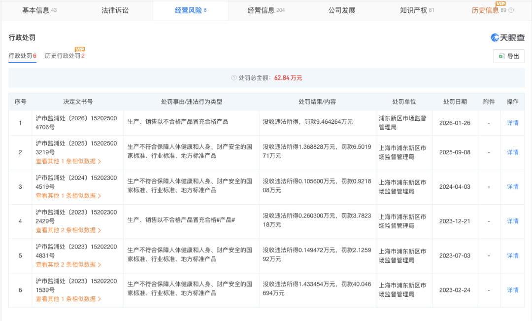 依据《上海市市场监督管理行政处罚裁量基准适用规定》和《上海市市场监督管理行政处罚裁量基准》的相关规定,综合考量违法行为的情节和危害后果,上海市浦东新区市场监督管理局决定给予一般处罚如下:1.罚款94642.64元;2.没收违法所得16002.97元。