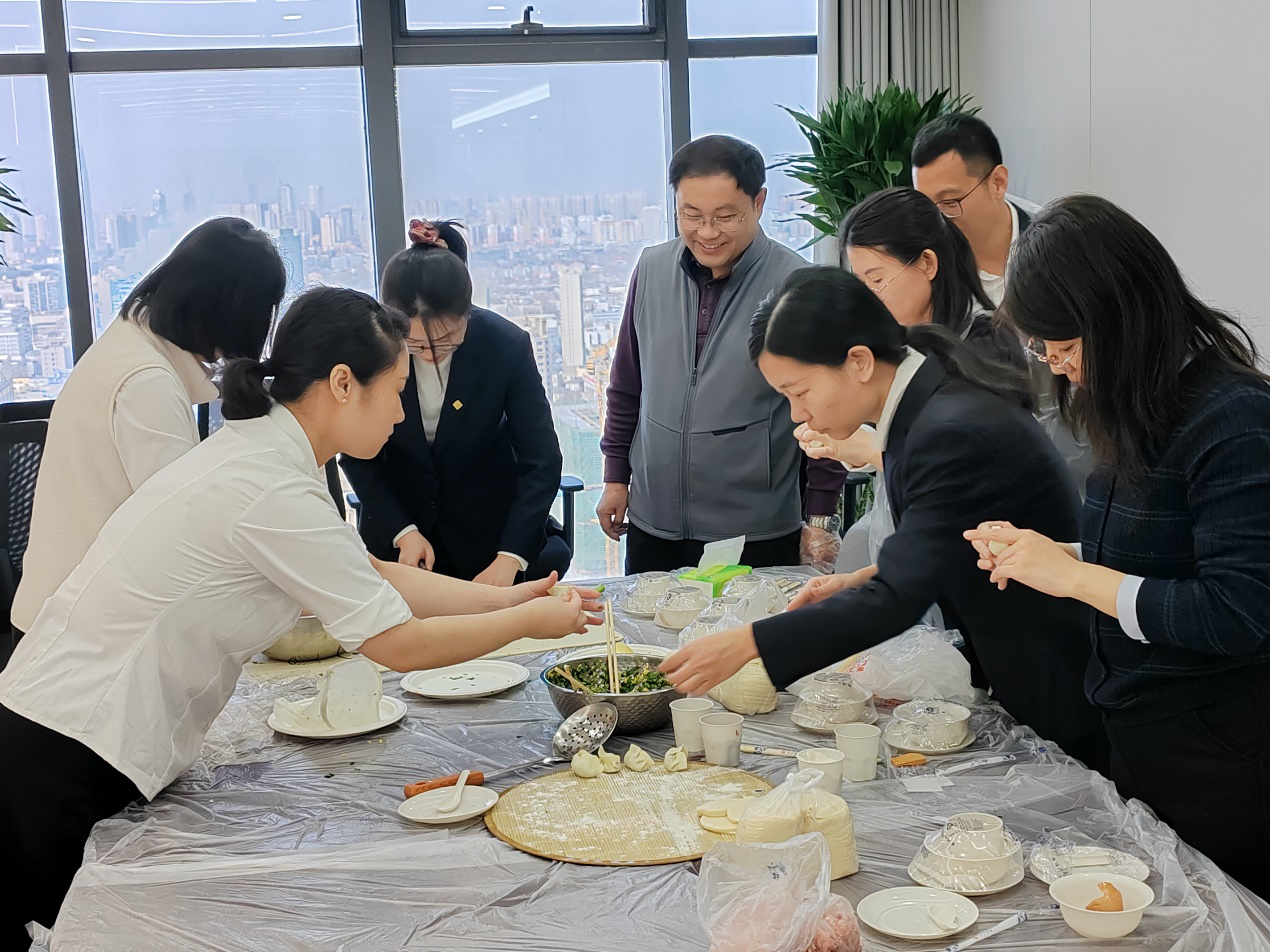 各组分工明确、配合默契。和面的、调馅的、擀皮的、包制的、煮饺的,各司其职。白菜馅寓意“百财聚来”,韭菜馅象征“财富长久”,芹菜馅寄托“勤劳致富”,猪肉馅传递“生活富足”。更有巧思者在部分水饺中包入红枣、花生,寓意“新春吉祥、岁岁安康”。元宝饺、月牙饺、麦穗饺形态各异,创意十足。热气腾腾的饺子出锅后,大家互相品尝劳动成果,分享独家“秘方”,欢声笑语间,新职场的每一个角落都洋溢着“家”的温暖。餐后,各组自觉清理场地,确保新职场整洁有序,展现了百年人良好的素养与主人翁意识。
