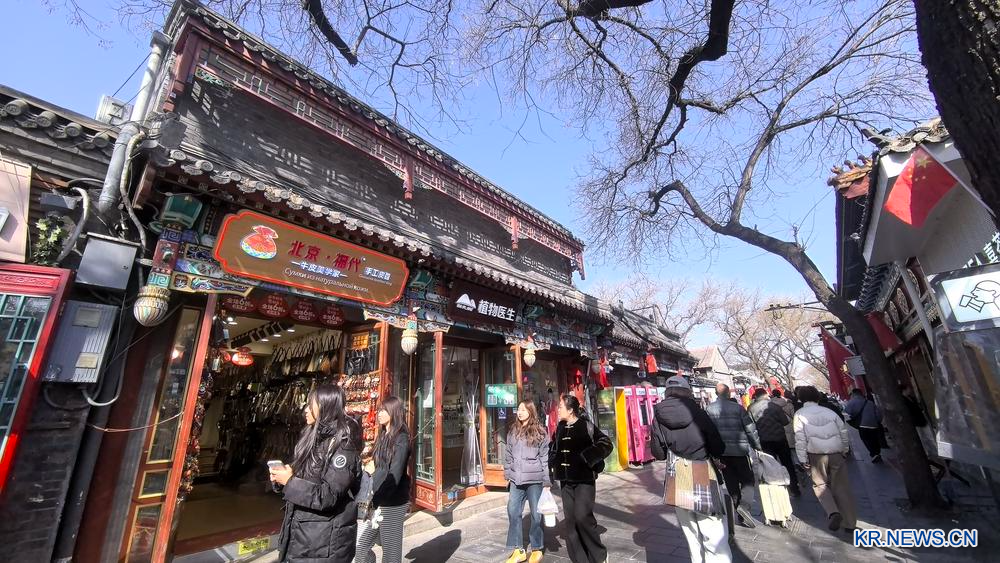 이날 난뤄구샹 등 옛 거리와 골목에 관광객의 발길이 이어졌다. 올 춘절(春節·음력설) 연휴 기간 많은 중국 국내외 관광객이 베이징을 찾아 높은 구매력을 보이며 문화관광 시장에 활력을 불어넣었다. 2026.2.24