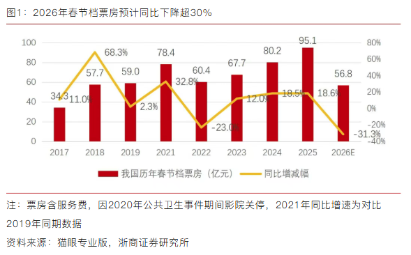 浙商证券传媒互联网研究团队认为,虽然2026年电影平均票价较2025年略有回落,但相较免费或低成本的短视频、短剧(国内免费模式的红果短剧APP在春节期间全部应用免费榜排名第三、娱乐类应用排名第一)等线上娱乐方式,成本不存在优势。短视频、短剧等碎片化娱乐方式对电影市场的冲击日益明显。