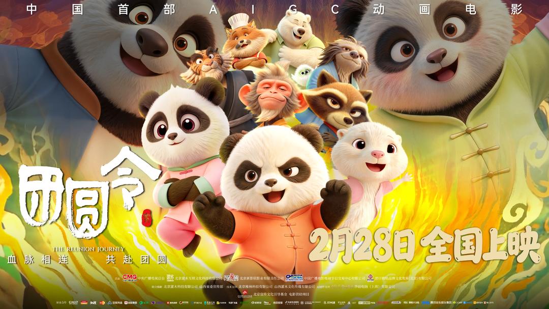 由中央广播电视总台、北京灌木互娱文化科技有限公司、北京新影联影业有限责任公司、中国广播电影电视节目交易中心有限公司、团仔圆妞品牌文化发展(北京)有限公司出品的中国首部AIGC动画电影《团圆令》官宣今日开启预售,并将于2月28日(正月十二)登陆大银幕。影片聚焦熊猫兄妹团仔与圆妞的失散与团聚,将以一场暖心治愈的寻亲冒险,为观众开启一整年的精彩与圆满。