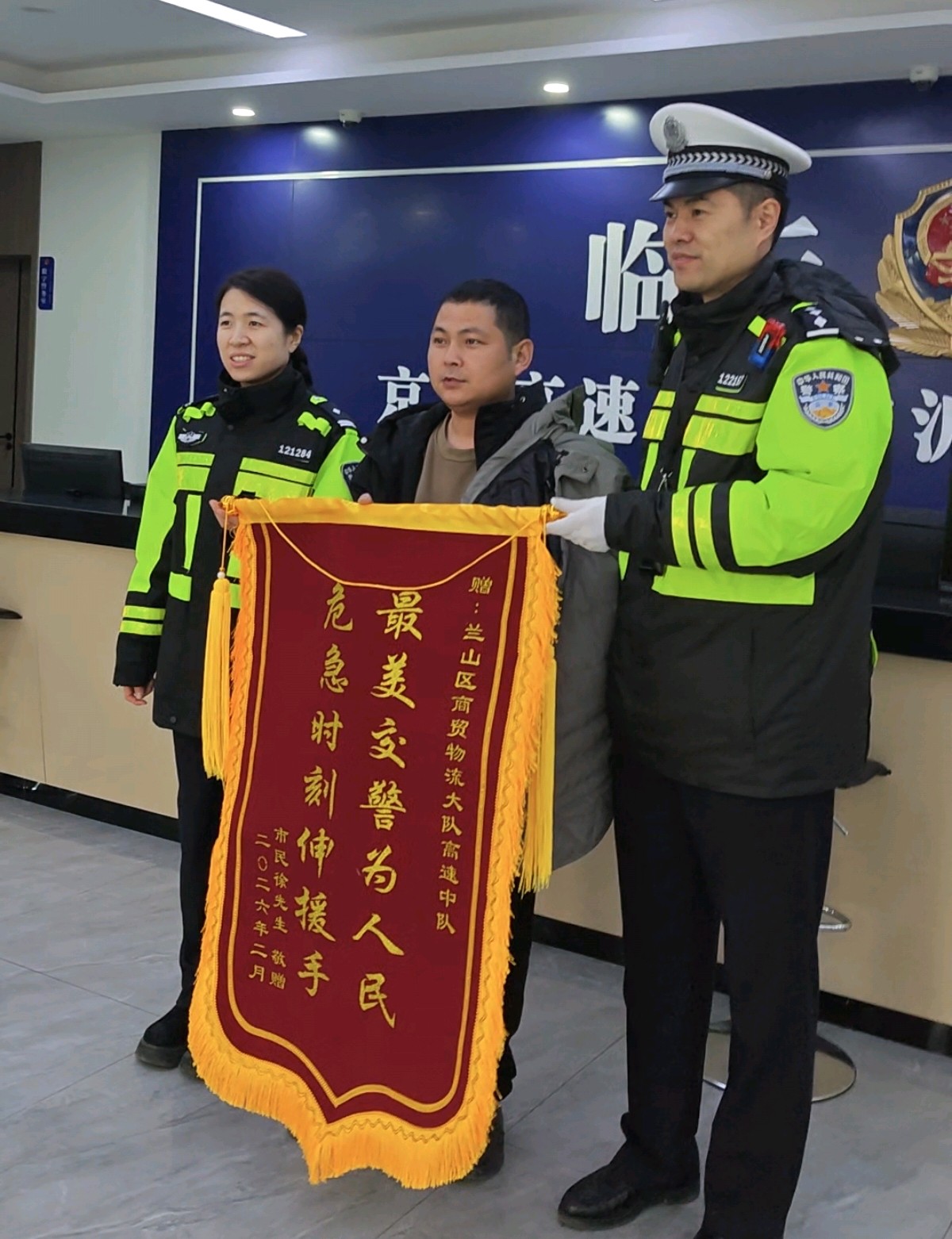 除夕前夜紧急开道救助,春节假期最后一天,临沂这位交警收到一面锦旗