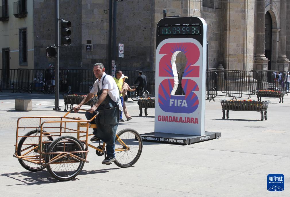 2月24日,在墨西哥哈利斯科州首府瓜达拉哈拉,一名男子骑车经过一处2026年世界杯倒计时牌。新华社发