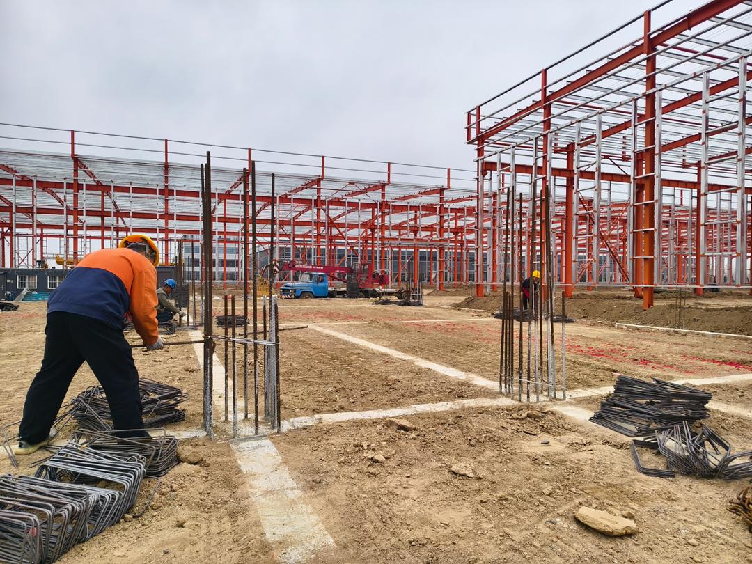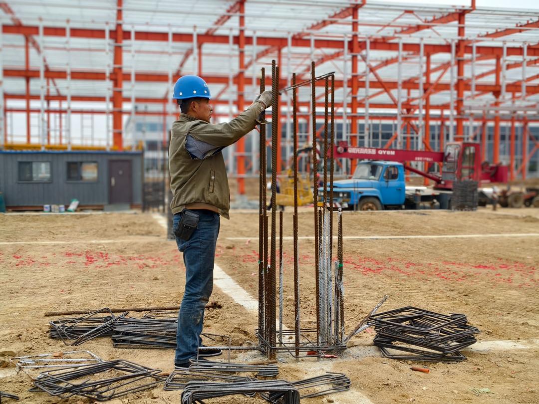 2月25日,在位于武城县的山东德天下通风设备有限公司组合式空调机组项目建设现场,工人正在进行钢结构架设施工,一派繁忙景象。