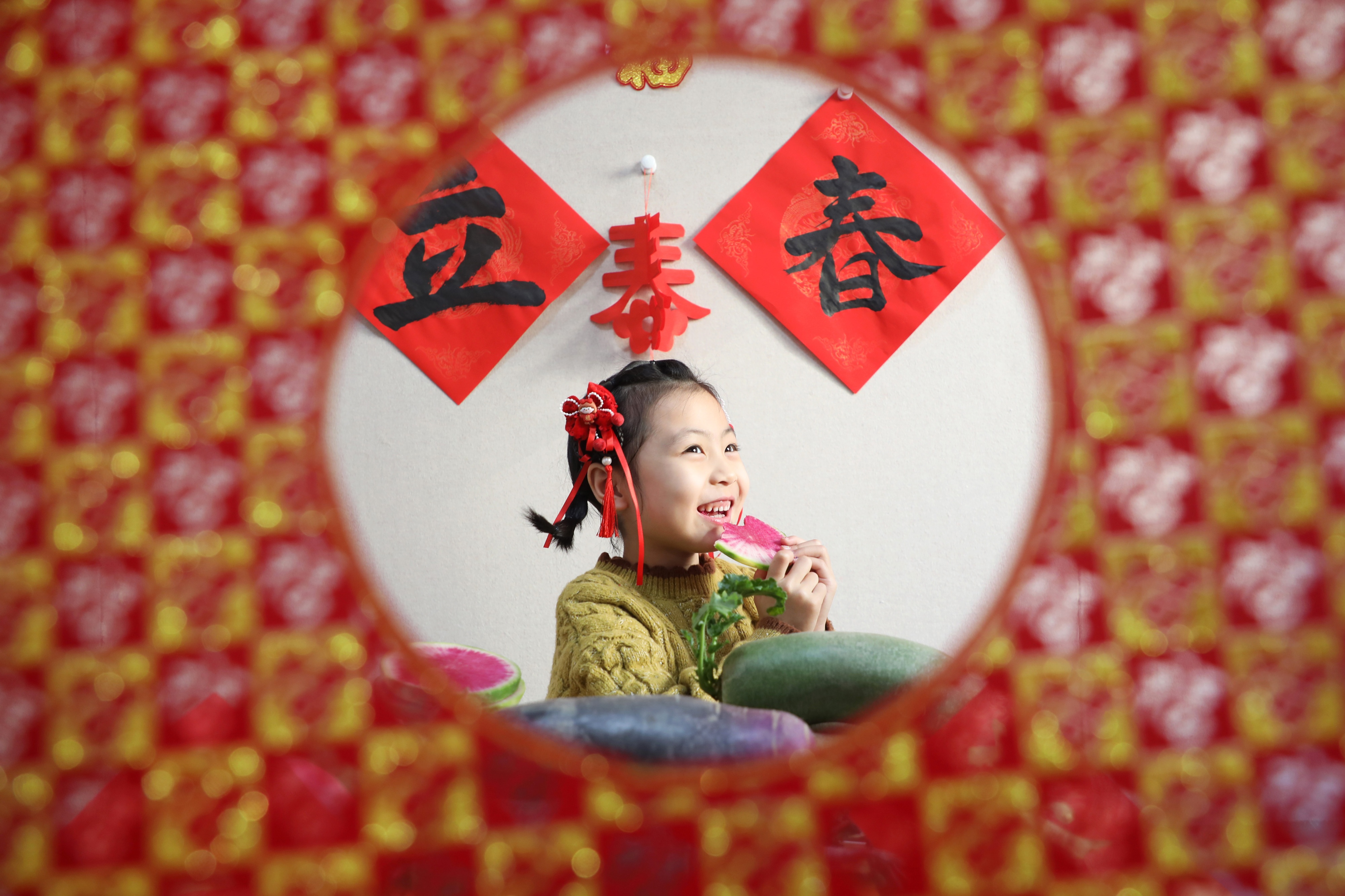 2月3日,河北省唐山市,小朋友在吃萝卜“咬春”。
