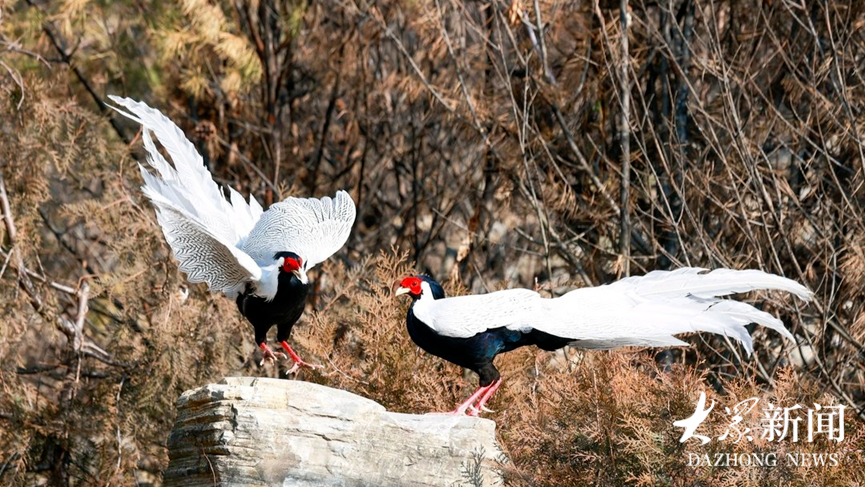 雄白鹇本就体态优雅,一袭黑白分明的羽毛配以赤红脸颊,宛若仙风道骨的“林中仙子”。而当争斗骤起,它们舒展双翼,修长的尾羽随风翻飞,原本静谧超然的“仙气”瞬间化作昂扬斗志。这动静之间的极致反差,正是大自然最动人心魄的瞬间。
