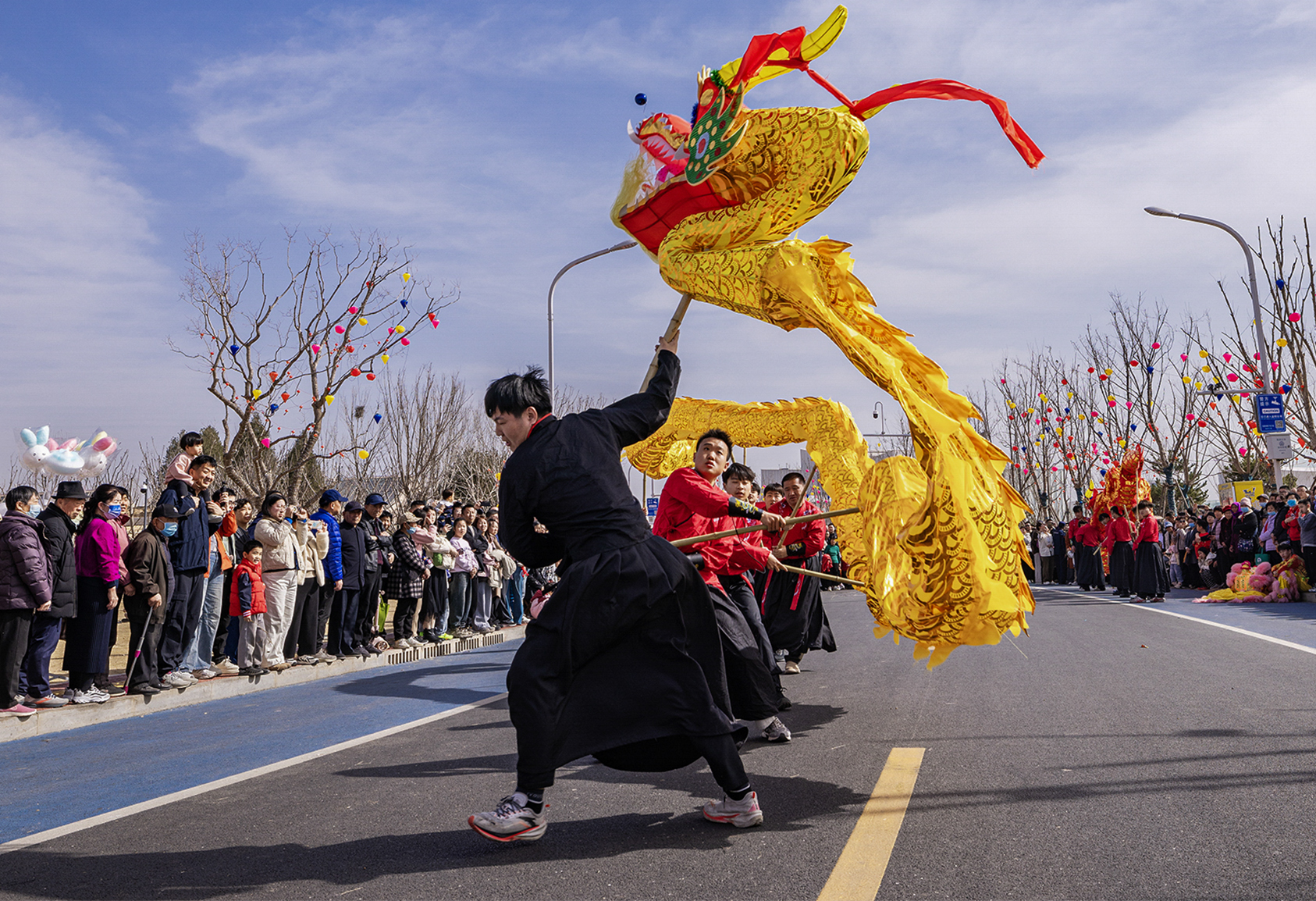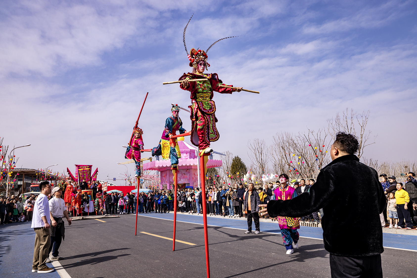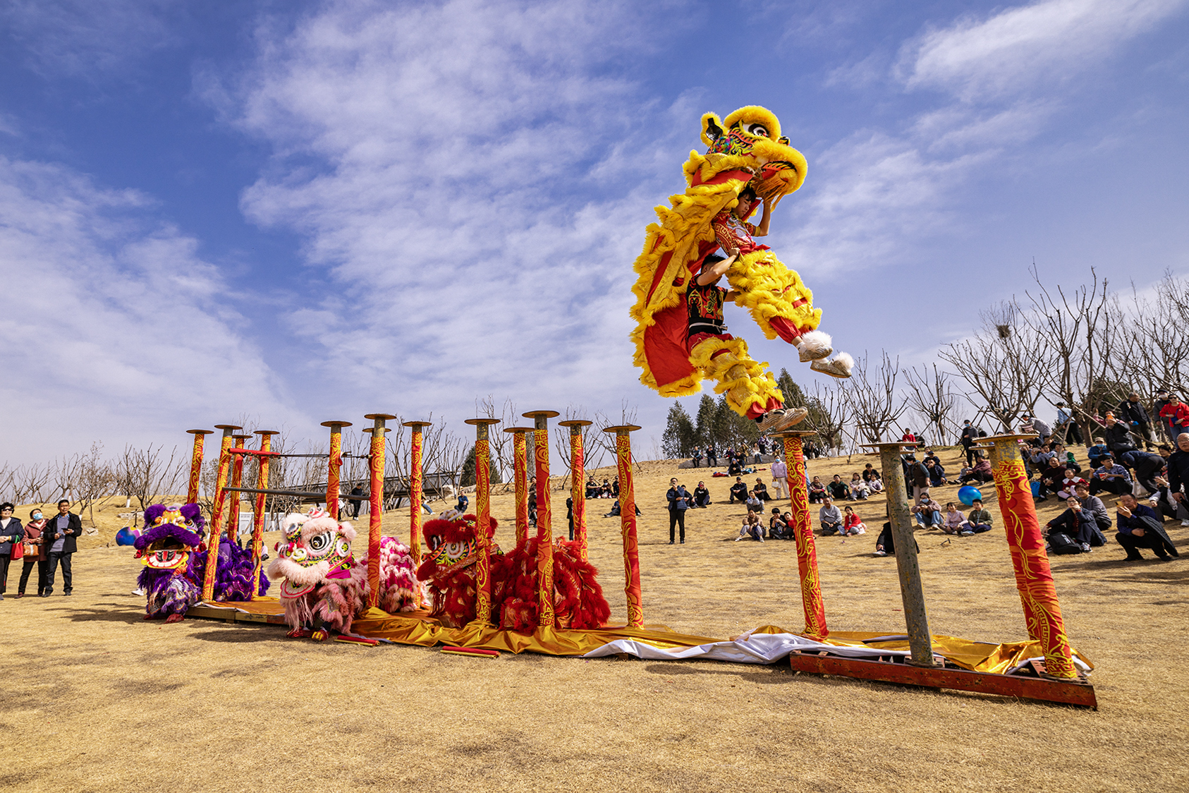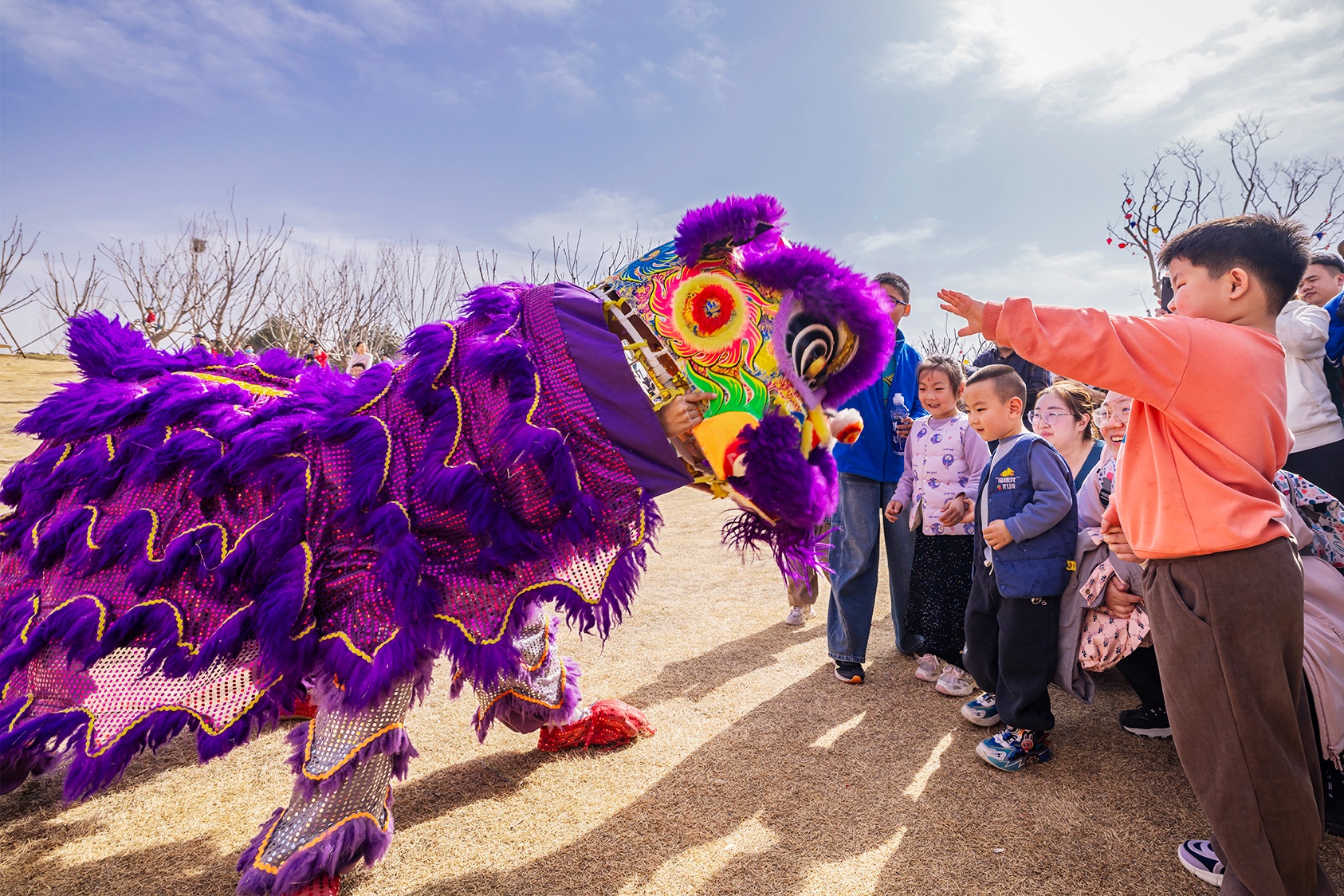 连日来,济南起步区的鹊华中新园里年味浓浓,各类民俗表演轮番上演,舞狮、舞狮、踩高跷,最动人的是打铁花,红红的铁水被匠人奋力扬起,瞬间化为万千流星,如金菊绽放,又似银河落地,引得喝彩声阵阵。(大众新闻记者杨润勤摄影张宝贤)