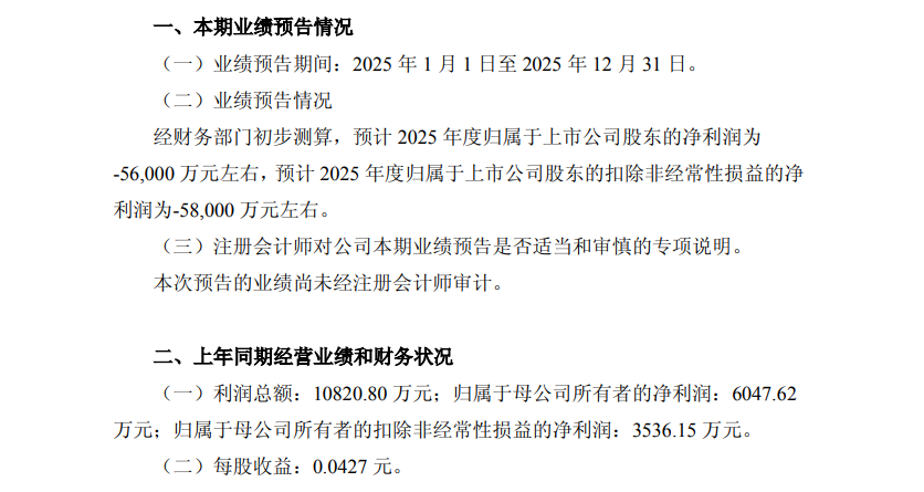 金晶科技(600586)表示,受2025年建筑玻璃、光伏玻璃、纯碱行业市场低迷影响,预计2025年度归属于上市公司股东的净利润亏损5.6亿元左右,扣除非经常性损益的净利润亏损在5.8亿元左右。