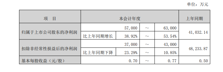 如纺织业龙头鲁泰A(000726)。它的业绩预告显示,2025年归属于上市公司股东的净利润 5.7亿元至6.3亿元,比上年同期增长 38.92%至53.54%。但扣除非经常性损益后的净利润在3.7亿元至4.3亿元左右,反而比上年同期下降 23.29%至10.85%。