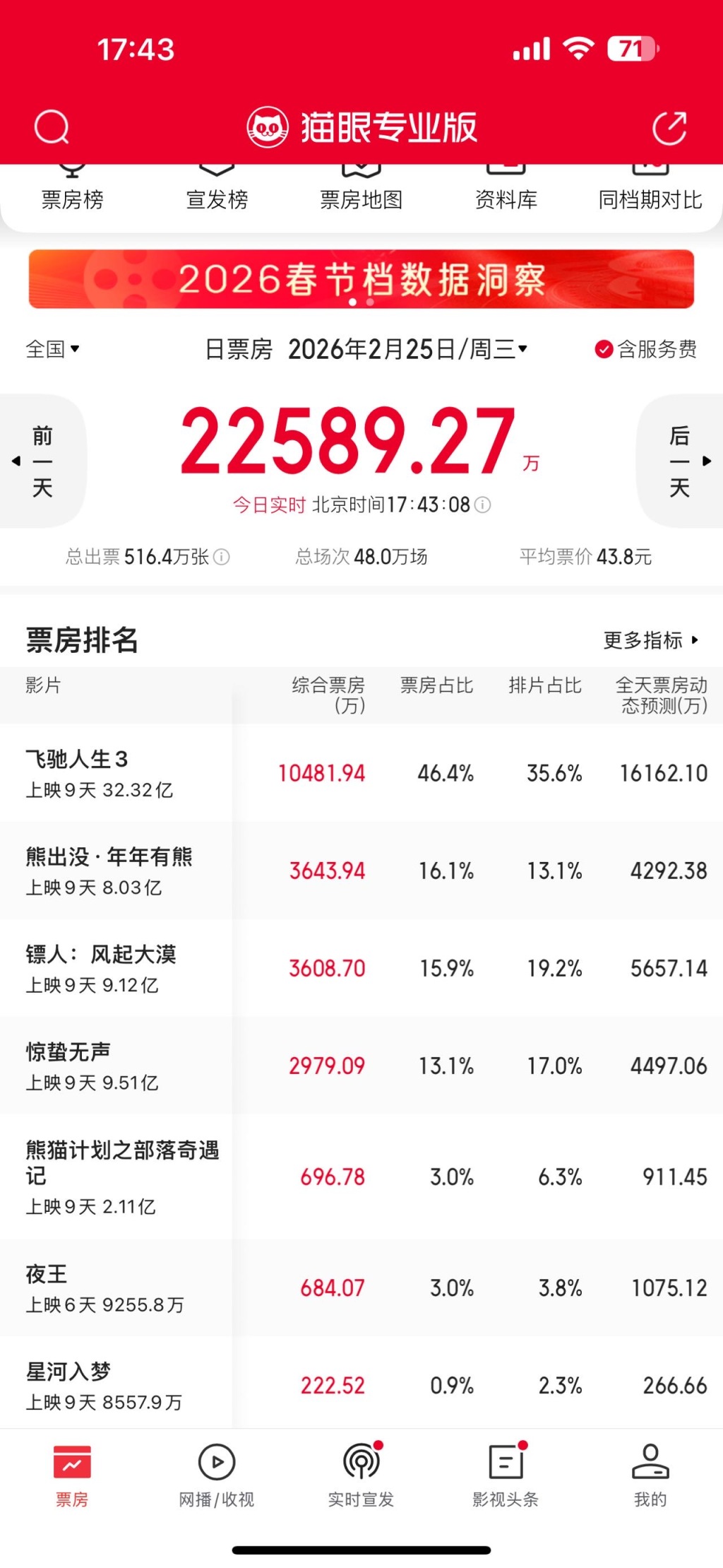 截至2月25日17:30,影片《熊出没·年年有熊》累计票房已突破8亿,尽显国民动画IP强大号召力。影片品质备受认可,口碑一路领跑:猫眼淘票票双平台斩获9.5高分,大V推荐度开分100%,多项核心数据位居春节档前列。