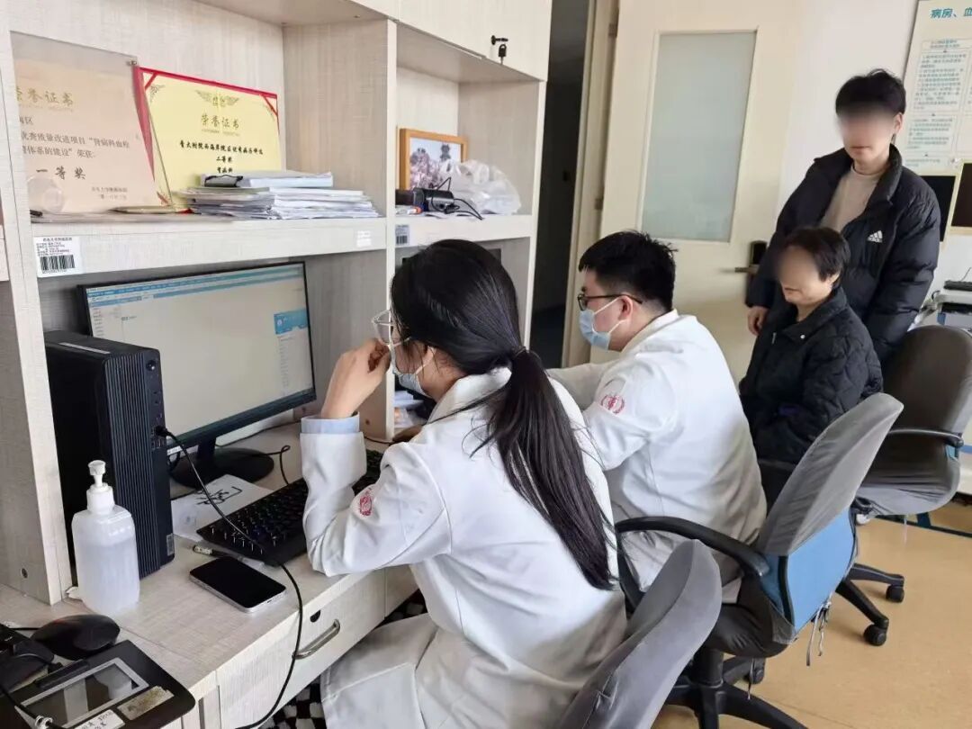 在肾病科,住培学员褚一鸣,值班期间收治8名患者,下夜班后仍主动协助处理救治工作;王文成值班期间收治11名患者,工作安排条理清晰。