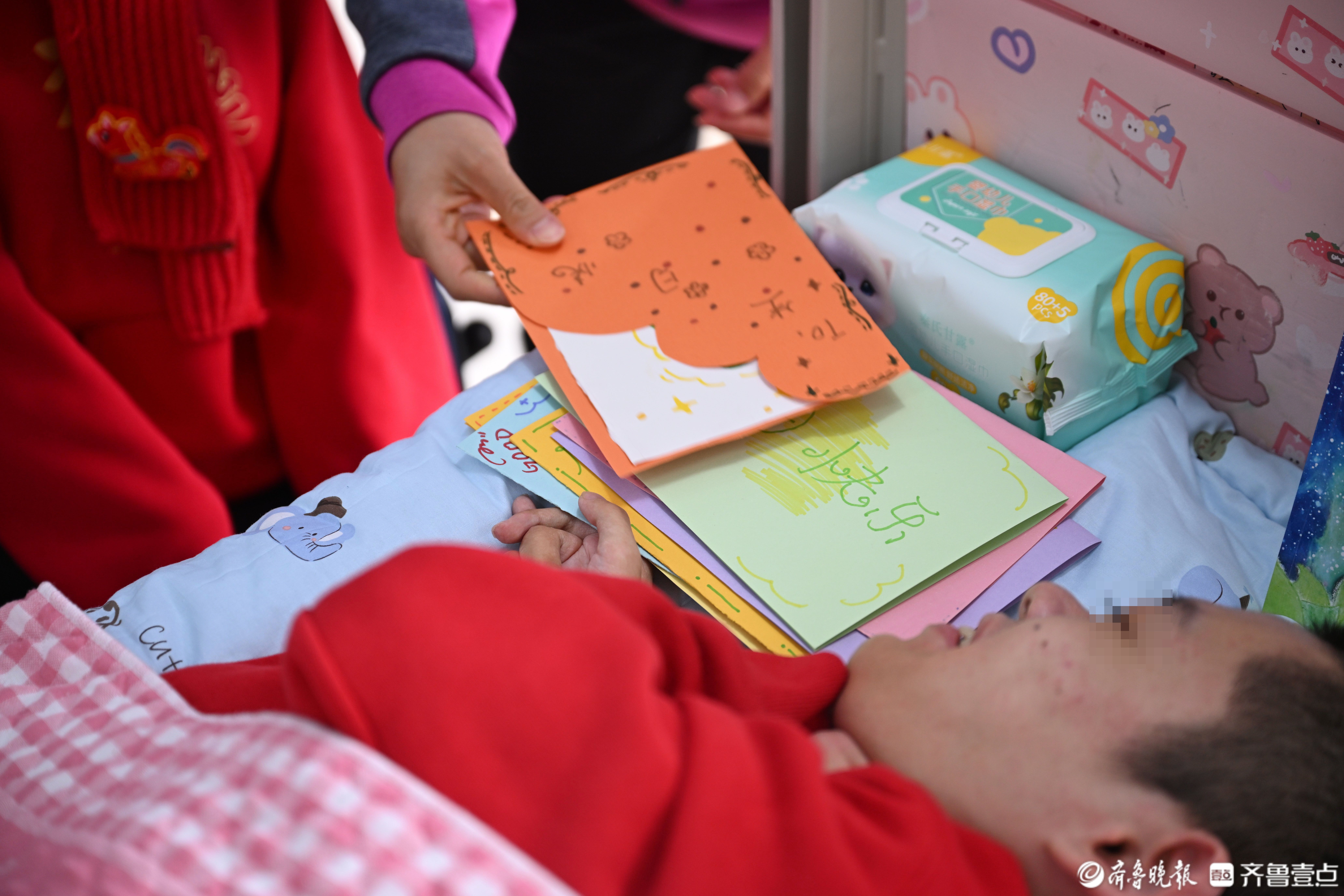福利院的弟弟妹妹们为鸣鸣送来生日贺卡。