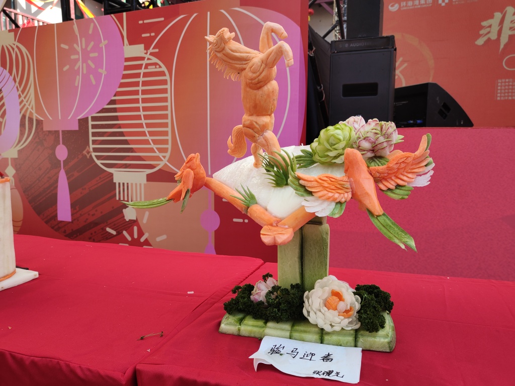 比赛中,30名来自专业院校、星级酒店及民间团体的雕刻选手围绕“马年”主题展开角逐。雕刻师以萝卜为原材料,辅以南瓜、西瓜等食材,通过灵巧的双手和独特的构思,将萝卜等原材料变成了栩栩如生的骏马迎春、祥龙瑞凤、山水花鸟。经过多维度评审,最终评选出各奖项得主。颁奖仪式上,主办方向获奖选手颁发荣誉证书和奖金。
