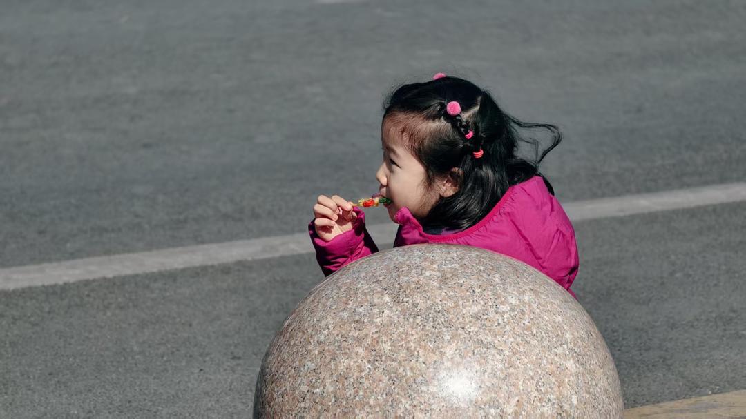 小女孩与妈妈同饮一杯甜饮,天真烂漫引得路人含笑驻足。