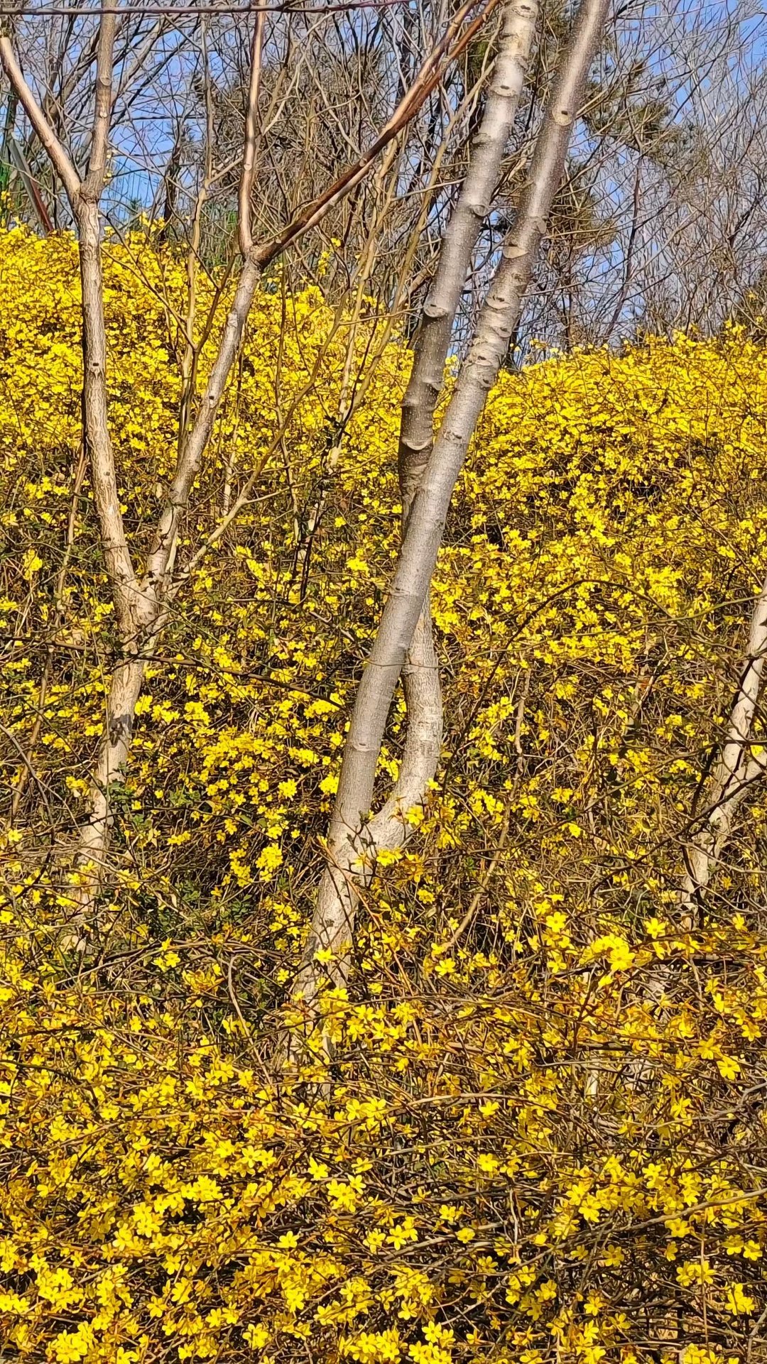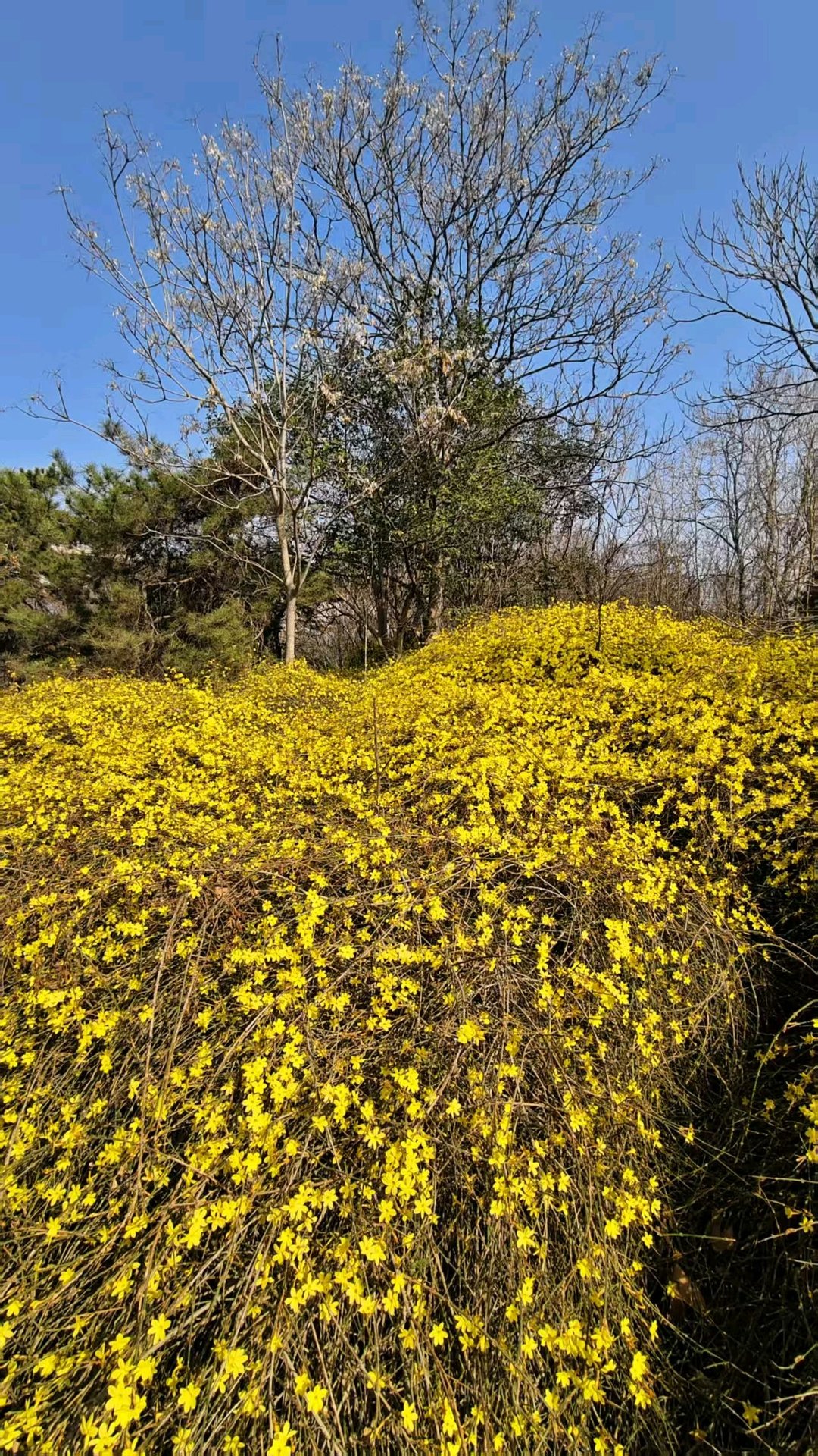 午后的暖阳里,从济南北部一山体公园穿行而过,无意中瞥见一大片迎春花肆意盛放,嫩黄的花瓣自在舒展,层层叠叠点缀在柔韧的青枝上,以最澄澈的金黄,点亮了尚未完全苏醒的大地。