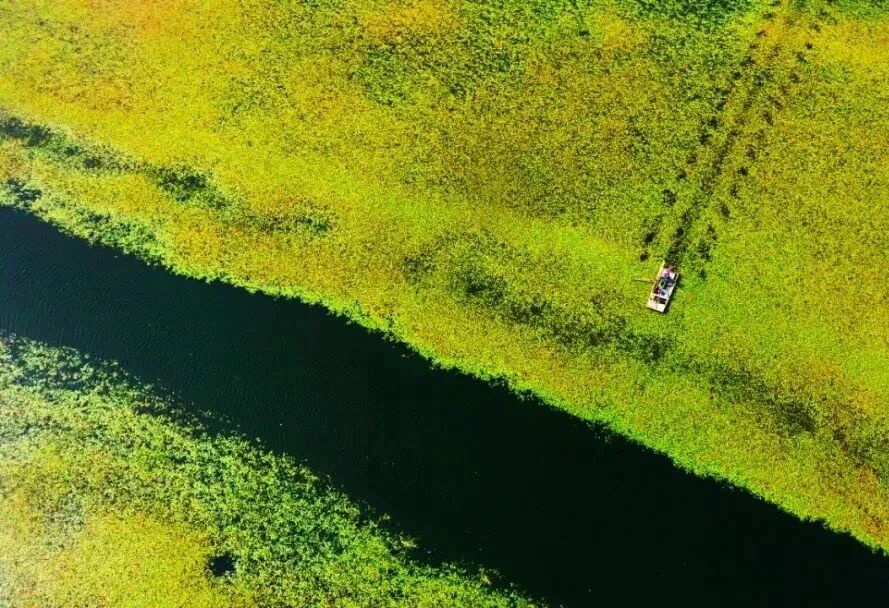 清澈湖面倒映着蓝天白云,成群候鸟振翅飞翔,鸣叫声清脆婉转,与岸边的绿树、远处的绿洲相映成趣,勾勒出一幅沙海绿洲、百鸟争鸣的生态画卷。当地组建专门巡护队伍,用立体监测体系守护候鸟安全越冬,这片水域成为鸟类安心停歇的家园。