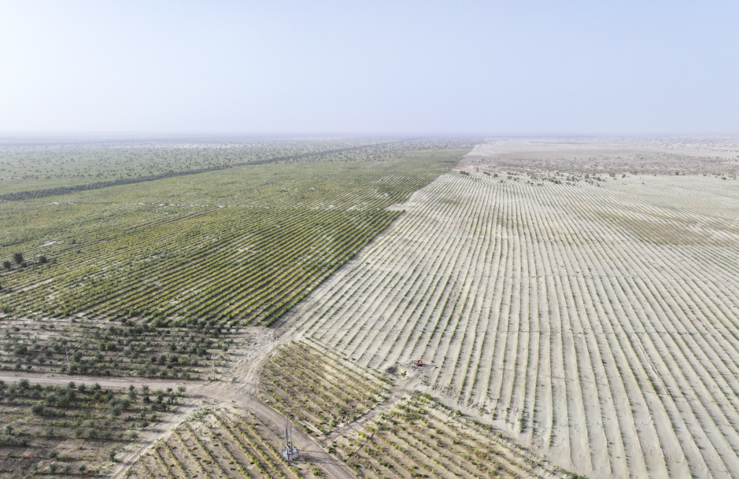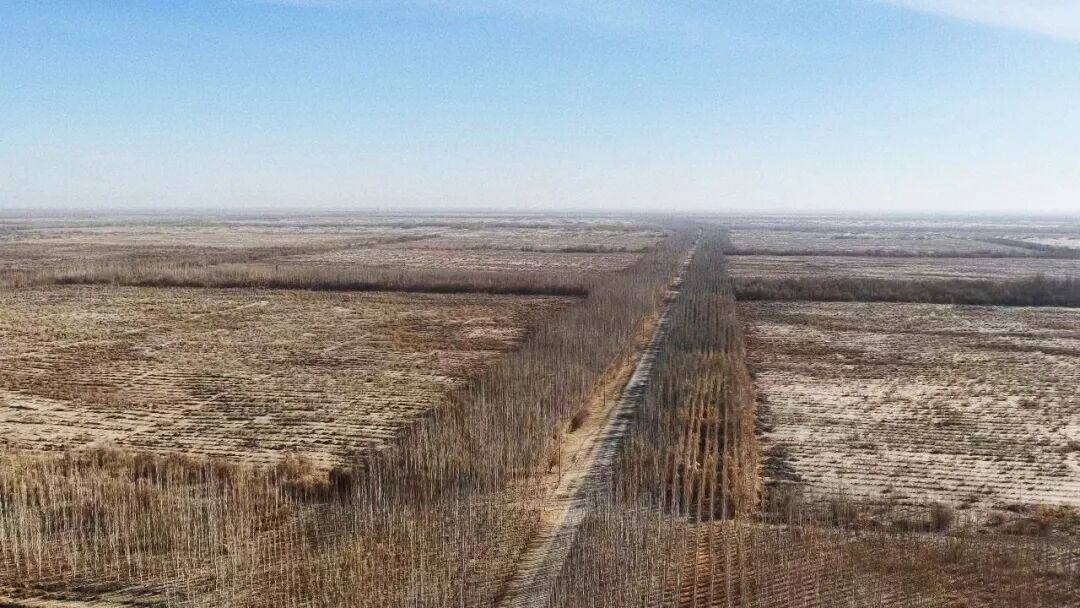 麦盖提百万亩防风固沙林阻挡沙漠前进。(资料图)喀什地区融媒体中心 记者衣木然·麦麦提艾力 摄