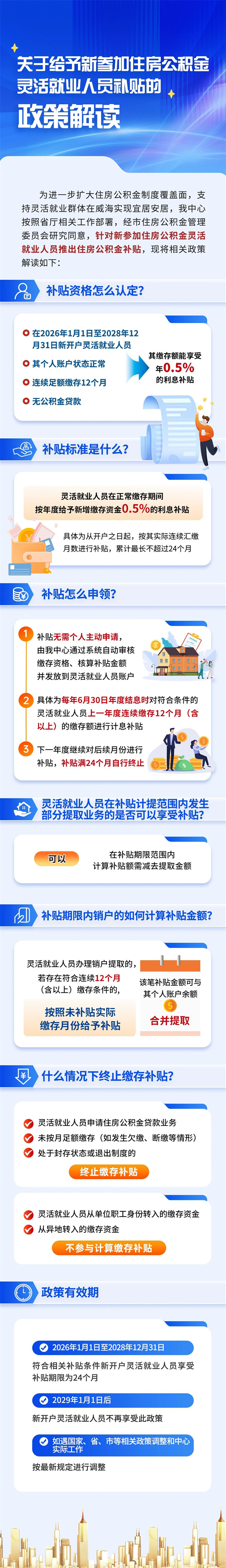 一、补贴范围:2026年1月1日至2028年12月31日新开户缴存的灵活就业人员。