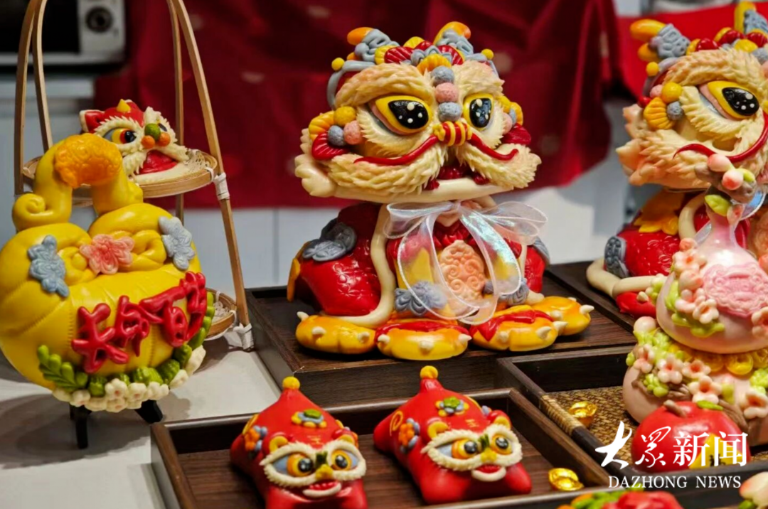 造型精致的醒狮花馍。