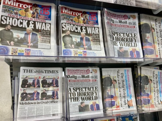 英国报纸广泛报道特朗普、泽连斯基和万斯在椭圆形办公室的争吵(Shutterstock)