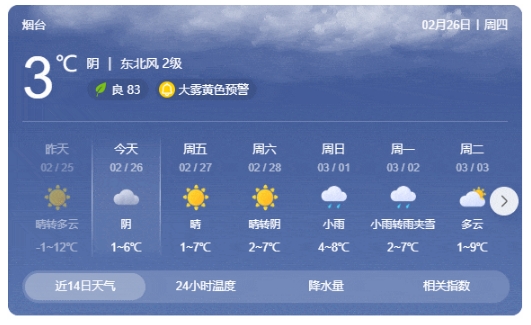 山东天气 烟台市气象局 2026-02-26 11:10:09