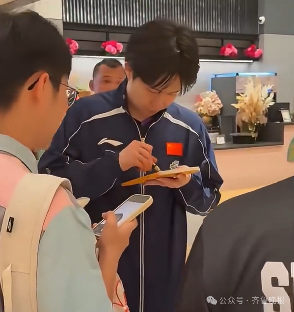 面对这份热情,王楚钦用温和语气解释:“不好意思,白纸我签不了,我给你签这儿行不?”随即,主动将名字签在对方的本子封面上。
