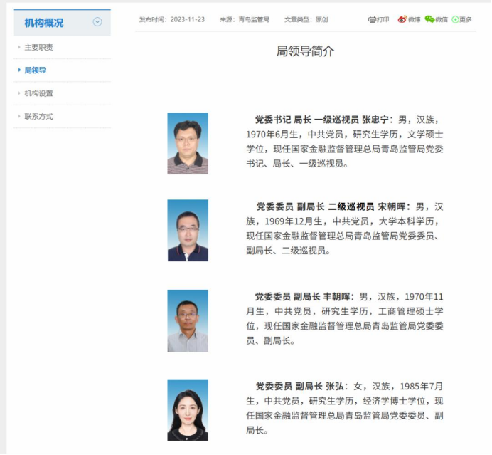 随着此番张弘履新,青岛金融监管局最新领导班子阵容已明确。