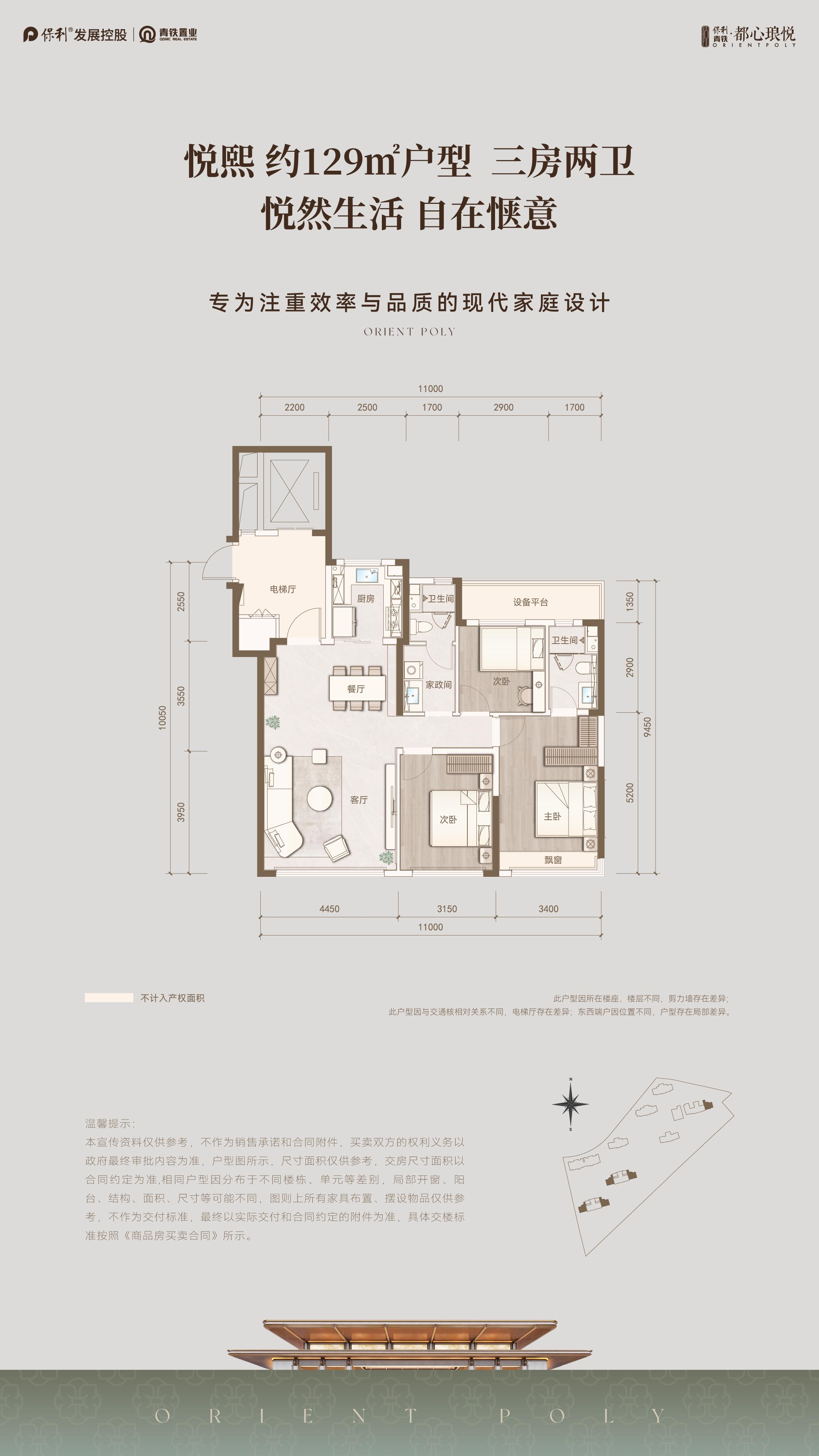 129㎡三室两厅两卫是主城改善“一步到位”的全能范本,专为城市高知改善客群量身打造,4.45m阔绰客厅开间+3m层高,LDKG一体化设计让厨房、餐厅、客厅无缝衔接,空间更从容;主卧套房配备独立卫浴与衣帽区,北次卧连接全赠送设备平台,可灵活打造儿童房、长辈房或书房,适配全生命周期需求。