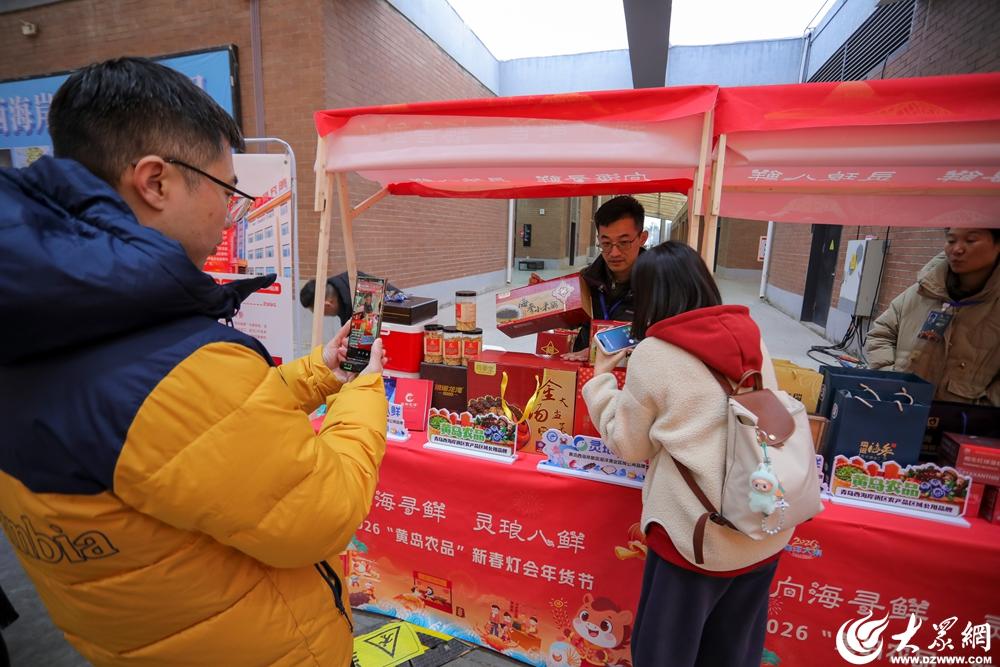 作为西海岸新区新春文旅年度盛事,马年灯会兼顾传统韵味与现代体验,百组主题灯组错落排布,非遗打铁花、皇家马戏团、VR互动等业态轮番登场,开幕当日便吸引近万名游客入园。现场的10个“黄岛农品”主题展位组成的年货长廊格外醒目,成为游客驻足选购、打卡拍照的热门区域。西海岸新区16余家优质农业企业、合作社及家庭农场,集中展出海青茶、琅琊鸡、灵山岛海参等地标农产品,有机杂粮、蓝莓果汁、特色糕点等精深加工产品同步亮相,地域特色鲜明、品类丰富齐全,全方位满足市民年货采购需求。各展位前人流不断,农品鲜香与花灯光影交织,构成西海岸新区新春独有的烟火风景。