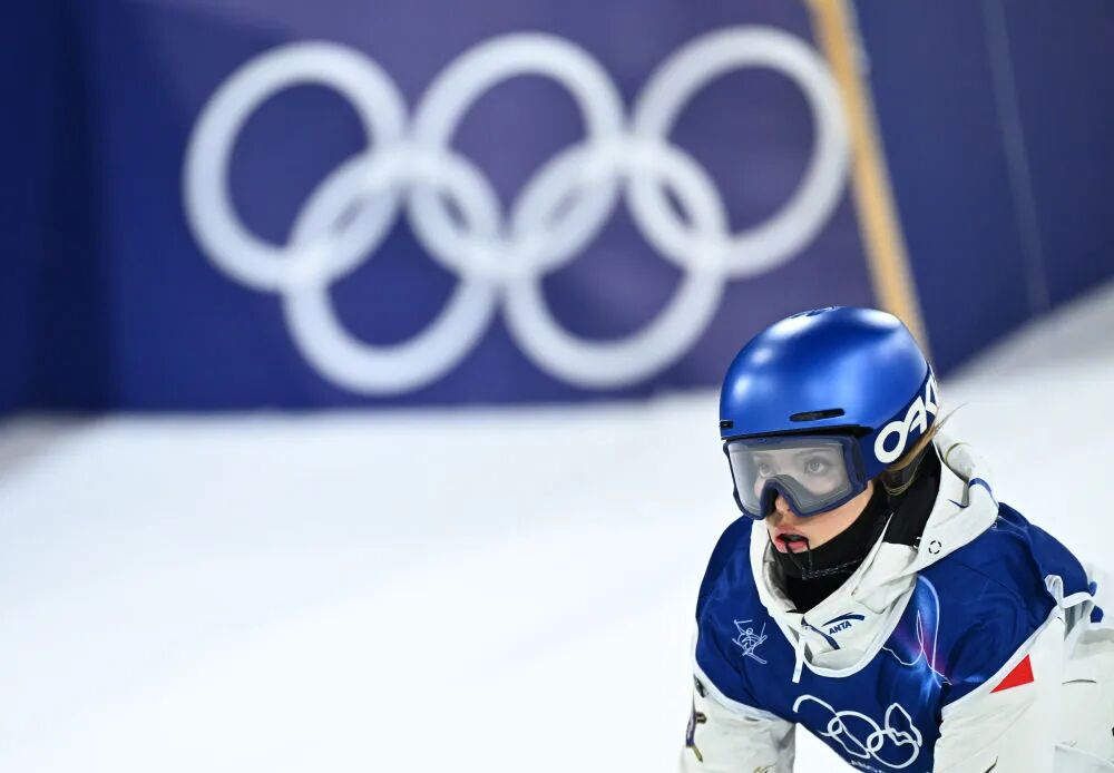 2月14日,谷爱凌在女子大跳台资格赛中。新华社记者 张宏祥 摄