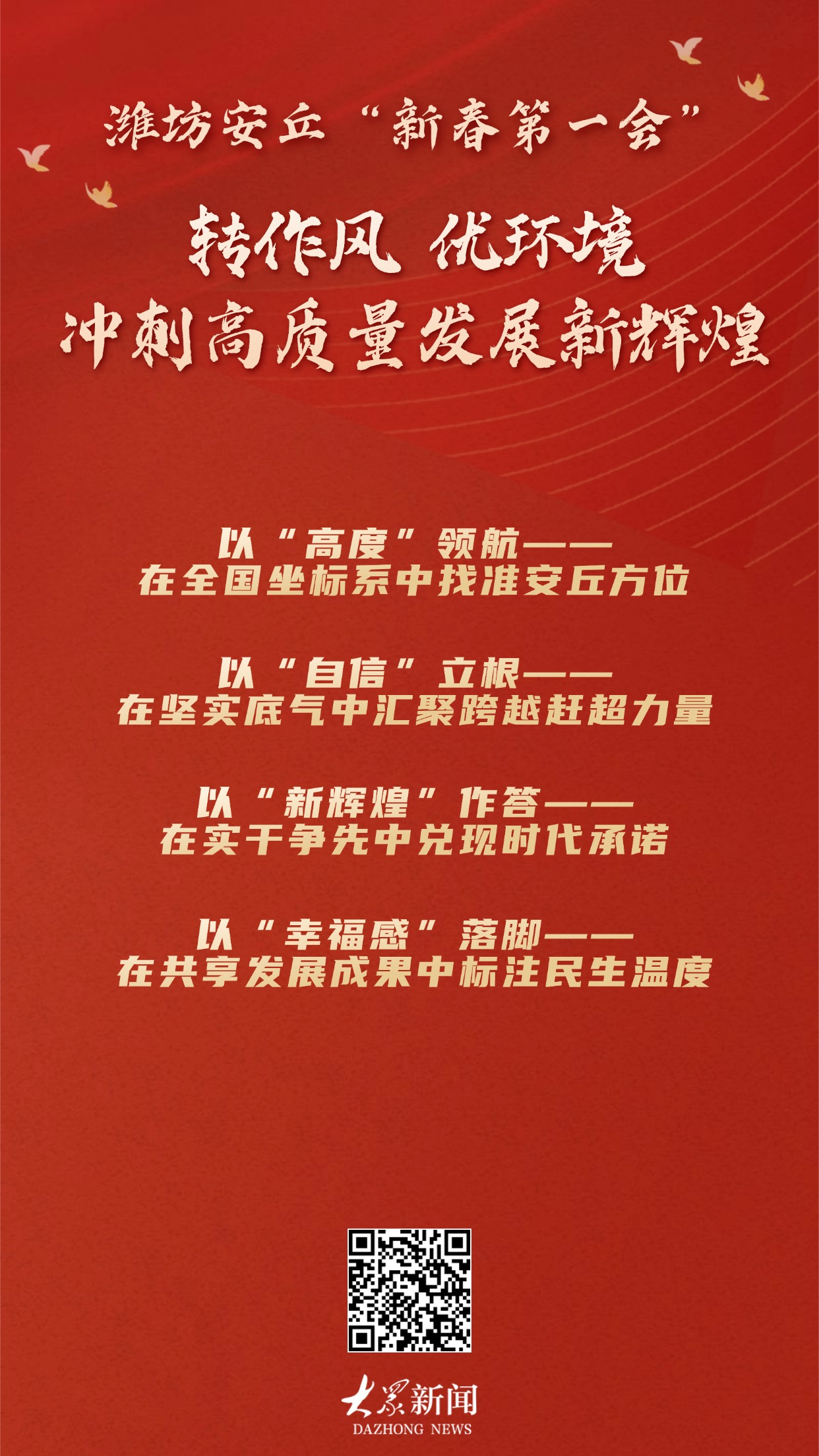 开局当有开局之势,起步应有起步之为。2026年,安丘正以“满格状态”击鼓催征、奋楫争先,在高质量发展的壮阔征程上,以自信为帆、以实干为桨,向着“冲刺新辉煌”的目标,乘风破浪,奔赴下一个山海。