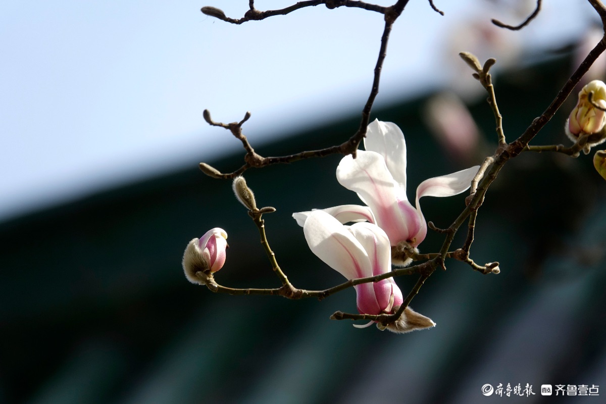 近日,随着气温回升,济南趵突泉公园内的玉兰花悄然绽放。洁白如雪,粉嫩似霞,有的盛开枝头,有的含苞待放,与泉水相映成趣。游客们纷纷驻足观赏,在暖暖的春风中感受这份春日浪漫,构成一幅生动的春日画卷。崔鹏森摄