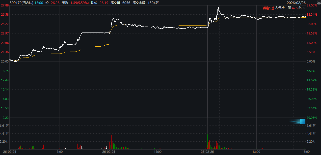 马年A股开市以来,培育钻石指数走强,多只概念股强势连续三日上涨。其中,马年A股开市3个交易日以来,黄河旋风3天2板;四方达24日20%涨停、25日涨超3%、26日盘中一度涨超10%,股价创历史新高;力量钻石、惠丰钻石、沃尔德、博云新材等涨幅居前。