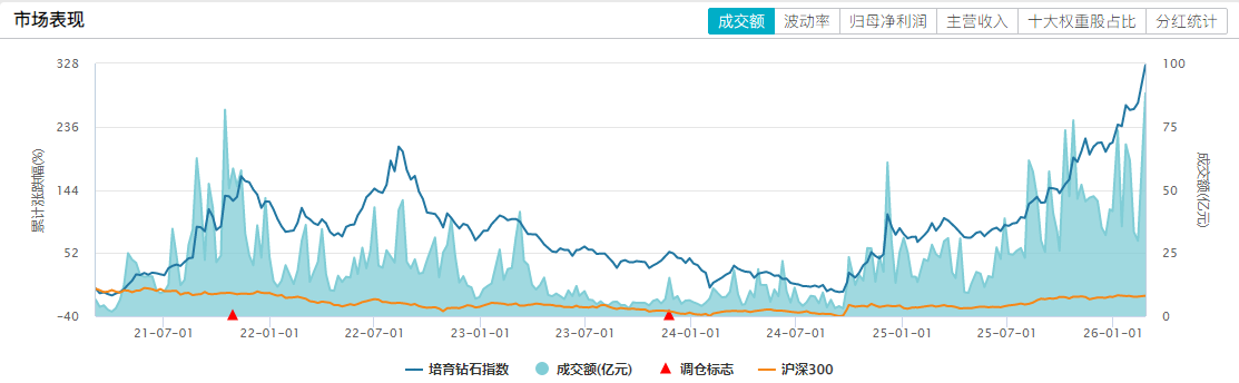Wind数据显示,截至2月26日收盘,培育钻石指数近一周区间上涨14.75%,本月区间上涨18.06%,近一年区间上涨112.13%。