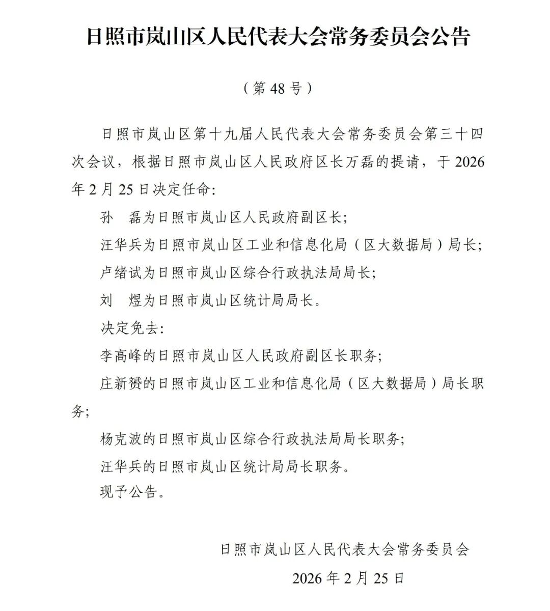 岚山区最新人事任免,孙磊任副区长