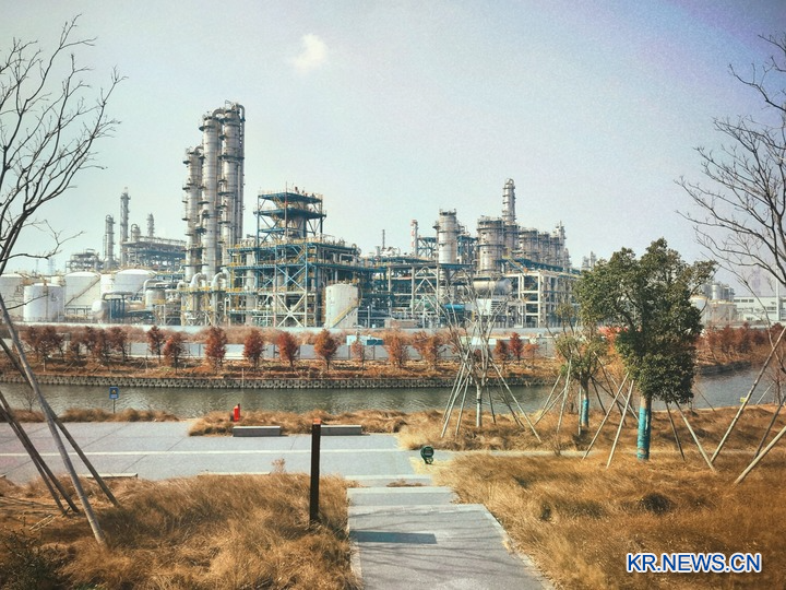 지난 18일 저장(浙江)성 닝보(寧波)시 전하이(鎮海)정유석유화학산업단지 내 안란(安瀾)공정도로. 비치인생3(飛馳人生3) 촬영지 중 한 곳인 이 지역은 춘절 관광객들에게 새로운 인기 명소가 됐다. (사진/신화통신)