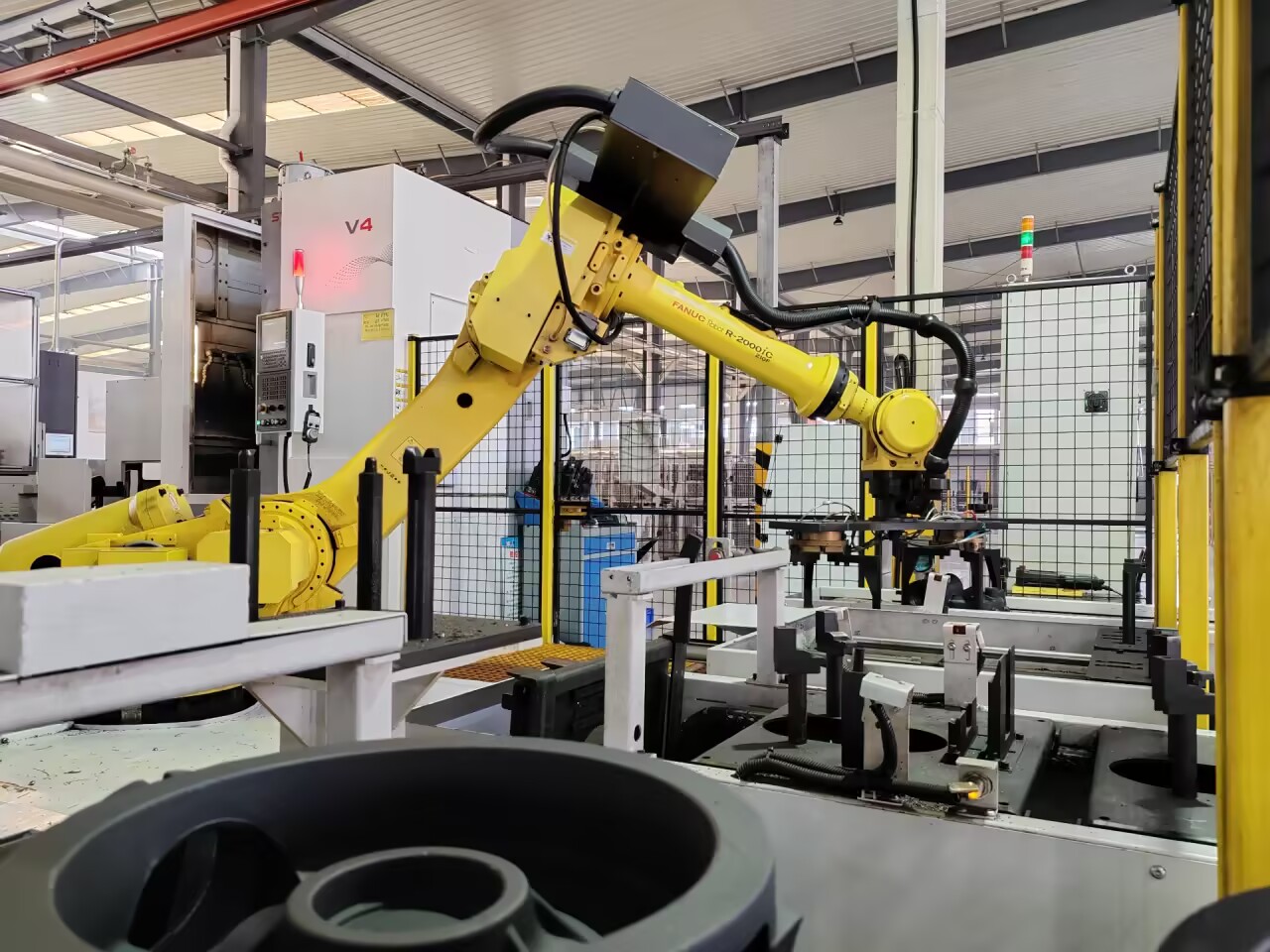 潍坊谷合传动技术有限公司自动化生产线上,工业机器人正在运转