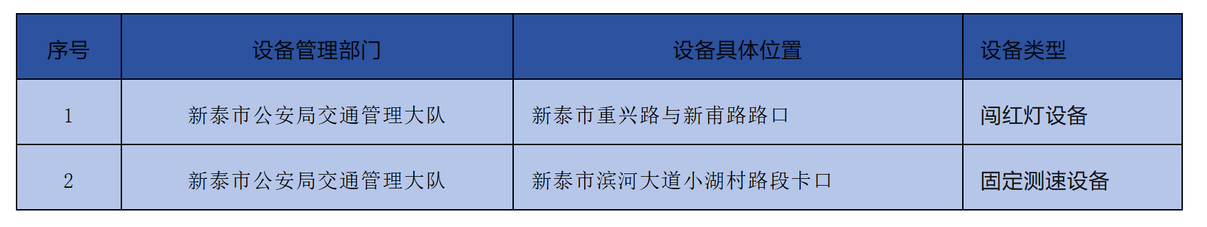 为确保道路交通安全畅通有序,预防和减少交通事故的发生,新泰市公安局交通管理大队新增2处交通技术监控设备。按照《中华人民共和国道路交通安全法》《道路交通安全违法行为处理程序规定》等法律法规的有关要求,现将相关设备设置地点予以公示,自公示之日起5个工作日后,将对有关违法行为进行依法管理,请广大交通参与者自觉遵守道路交通法律法规,共同维护良好的道路交通环境。