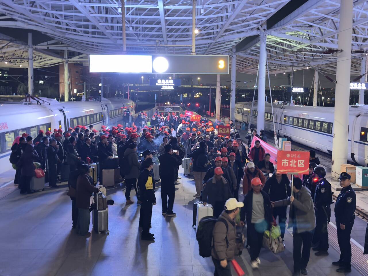 2月25日21时29分,G2096次高铁专列驶入站台,530名来自甘肃定西的务工人员抵达青岛。为了让务工人员暖心抵达、安心返岗,青岛市人力资源和社会保障局牵头联动铁路、地铁等多部门,提前谋划、协同发力,织密“出发—抵达—上岗”全流程服务保障网。站台上,各区市引导牌清晰醒目,人社部门工作人员手持“青岛欢迎您”横幅等候。青岛北站开辟返岗人员绿色通道,地铁同步做好接驳保障,实现下火车、上接驳、零停留无缝衔接,高效打通返岗“最后一公里”。“一下车就看到欢迎牌,工作人员主动帮拿行李、指引路线,心里特别踏实。”首次来青务工的定西青年宋维国说道。
