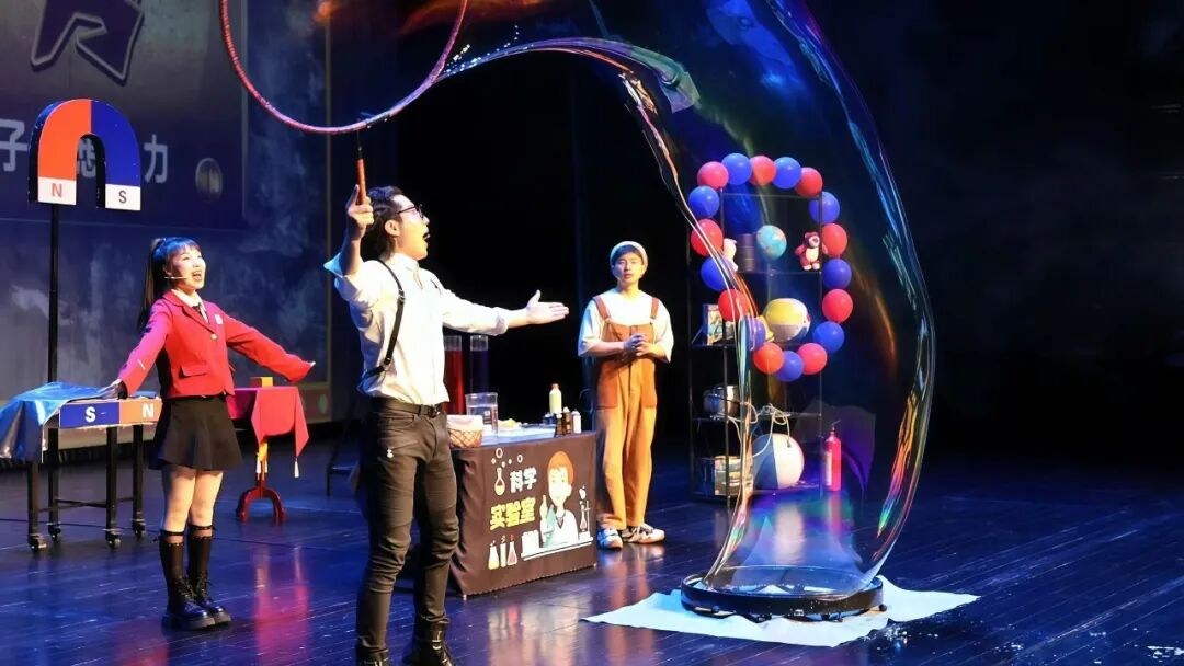 消失的物体在电磁力作用下重现,梦幻泡泡秀更添童趣,巨型泡泡折射出彩虹般的光韵,揭示表面张力的神奇。