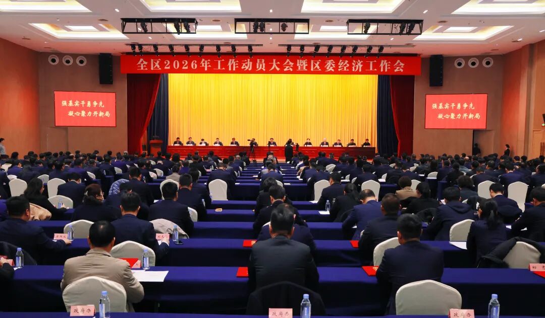 2月25日下午,环翠区2026年工作动员大会暨区委经济工作会议召开。一场会议,双重使命:既是总结成绩、表彰先进的动员会,鼓士气、提信心,激励广大干部群众争分夺秒、真抓实干,奋力实现“开门红”;更是研判形势、部署任务的誓师会,明方向、定调子,为高质量发展划出重点,为“十五五”开局筑牢政治根基。