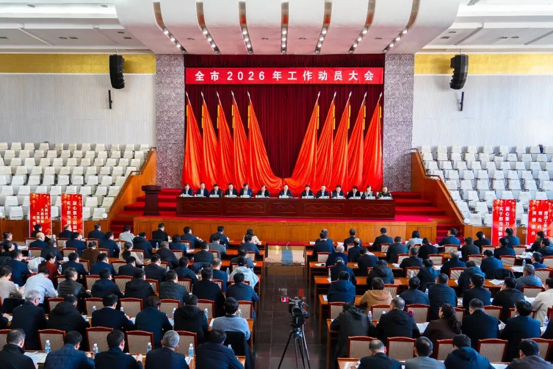 王大治在讲话中指出,过去一年,全市上下深入推进“大抓经济、大抓基层、大抓落实”提升年和“五争五提升”重点任务,经济发展成色越来越足,产业培育质量越来越高,民生保障力度越来越大,安全底线守得越来越牢,干部队伍作风越来越实,经济社会发展取得显著成效。2026年是“十五五”开局之年,全市上下要牢牢把握“大抓经济、大抓基层、大抓落实”攻坚年主题,持续深化“五争五提升”要求,重心再聚焦、措施再优化、攻坚再加力,推动各项目标任务由“提升”向“攻坚”延伸转变,争取新的一年工作有更多新的变化。