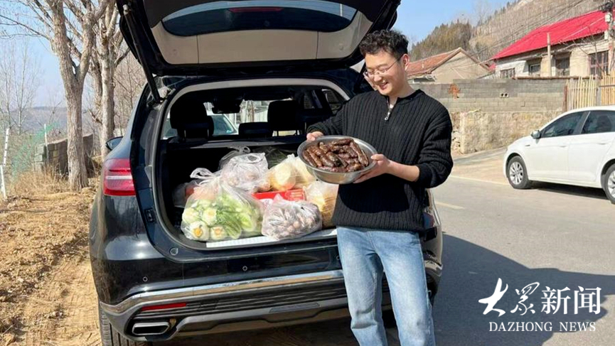 名场面:“这是我妈灌的香肠,外面买不到这个味儿。”返程前,小刘的后备箱俨然成了一个移动的“家乡美食仓库”。香肠、馒头、煎饼、饮料、蔬菜,还有一大袋核桃。只要能塞下的地方,都被填满了。“俺妈说了,得多吃核桃补补脑。”