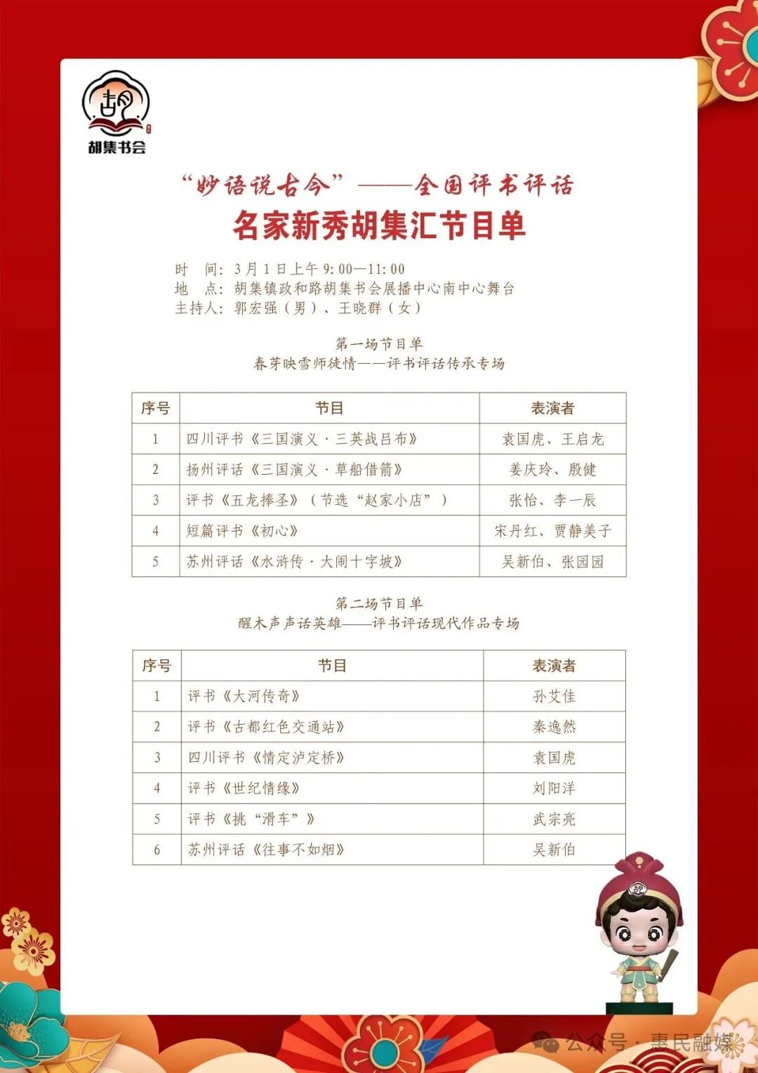 将在胡集镇政和路胡集书会展播中心南中心舞台轮番上演。