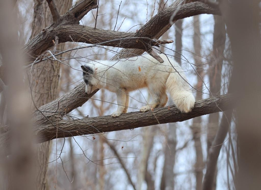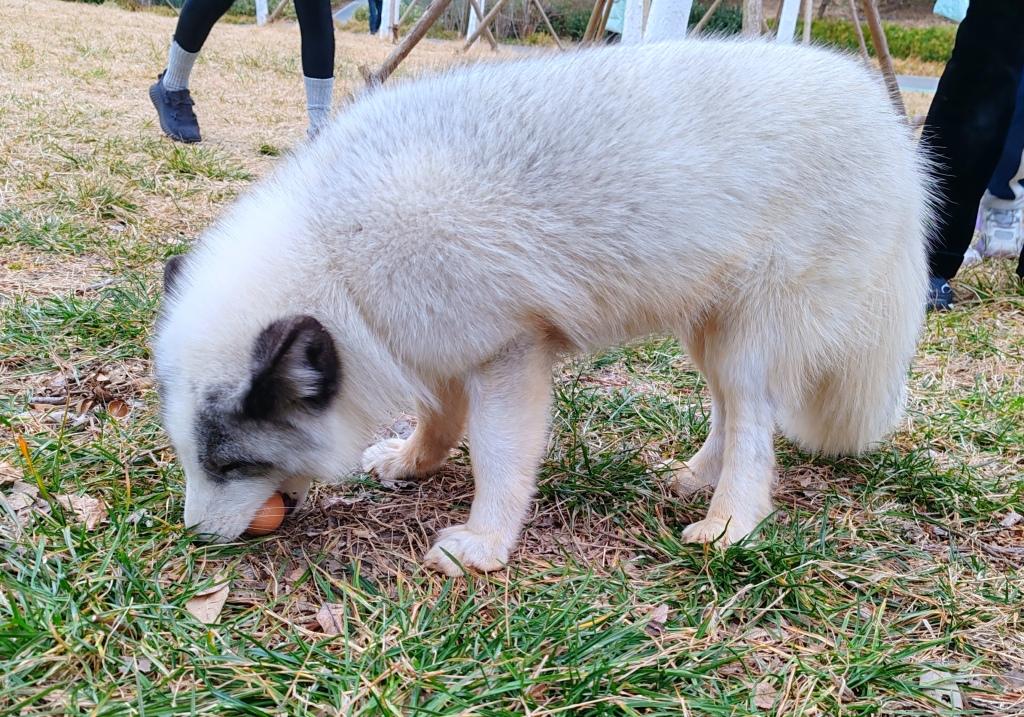 近日,其中一只浑身雪白的狐狸“小九”死亡,传闻疑似被其他动物咬死,而另外一只狐狸“小白”现在生活状况,这牵动着不少市民的心。2月26日,岛城市区气温有些阴冷,记者特地再次前往浮山森林公园寻找另外一只狐狸“小白”,在一处山坡上记者注意到,不少登山的市民将小白包围起来进行投喂,小白口含着市民投喂的鸡蛋,跑向了远处的山坡将鸡蛋藏匿,还时不时爬到一棵斜长的树干高处,不时地向远处观望,像是在寻找它此前的同伴“小九”,让人感慨。现场不少市民特意带着孩子来看望这只仅存的狐狸,大家对于另外一只狐狸小九的死去十分心痛。