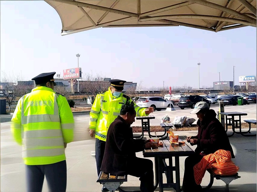 了解情况后,三名执法人员没有丝毫犹豫,立即决定伸出援手。他们自掏腰包,迅速在服务区买来了热气腾腾的方便面、火腿肠和茶叶蛋,并细心地为夫妇俩接好热水,将泡好的大碗面亲手送到他们手中。捧着这碗热食,来自千里之外的异乡人顿时红了眼眶,激动地连连道谢:“太感谢你们了,在这人生地不熟的地方,让我们感受到了家的温暖。”