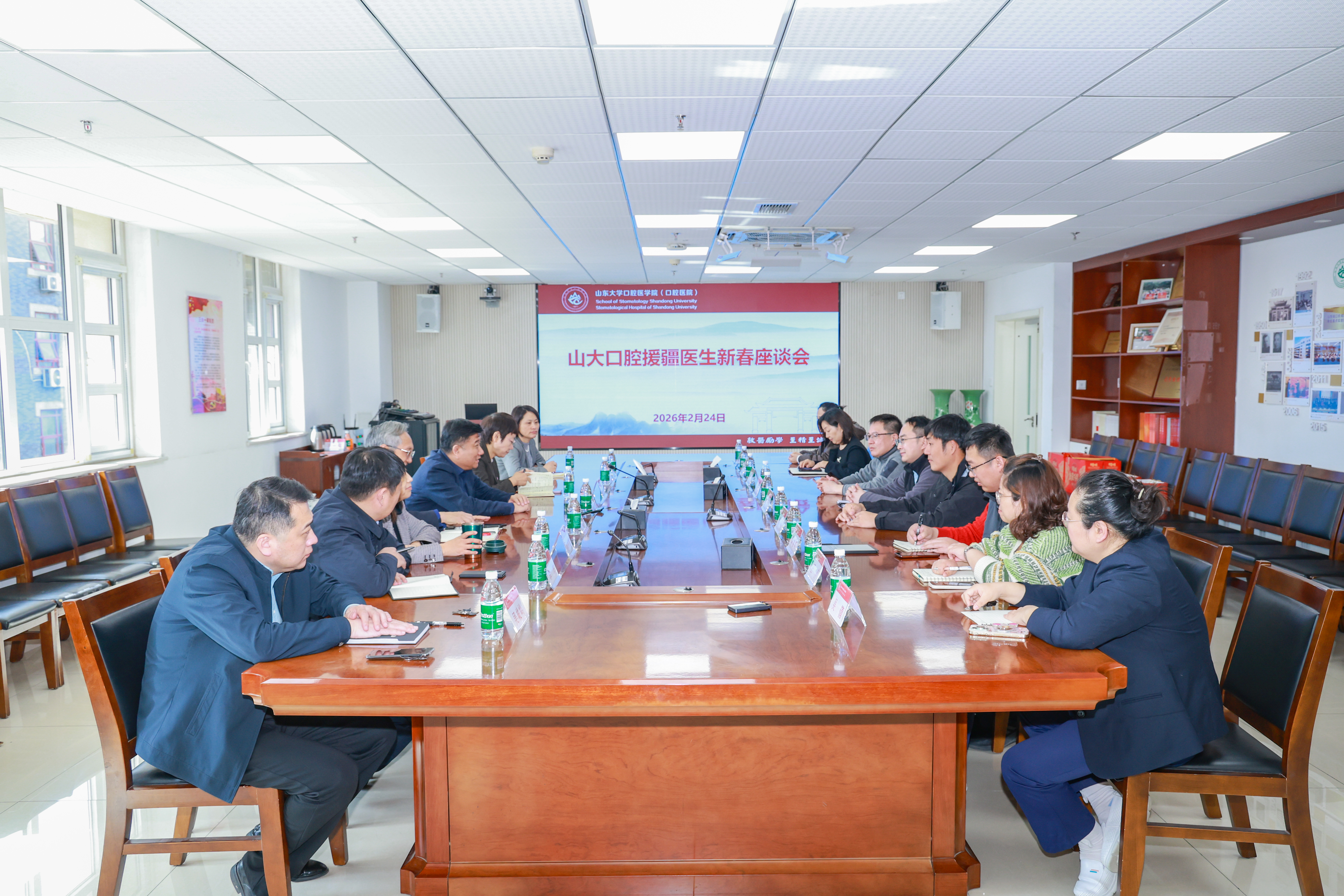 2月24日,新年开工第一天,山大口腔2026年新春团拜会及援疆医生新春座谈会顺利举行。山大口腔党委书记张青、院长葛少华等领导班子成员及各中层单位负责人齐聚一堂,共同为医院师生医务员工送上新春祝福,吹响丙午马年乘势而上、挺膺担当的号角,凝聚起奋楫扬帆、共启新程的强大合力。