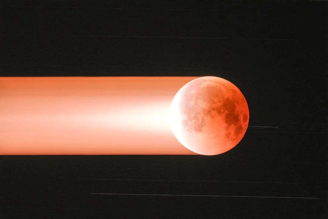 1.红月亮:当月球完全进入地球本影,太阳直射光无法抵达月球表面,但地球大气层就像一个神奇的滤镜。太阳光由多种颜色组成,其中蓝光等波长较短,在穿过地球大气层时,容易被大气分子散射和吸收;而红光波长较长,具有较强的穿透能力,能绕过地球大气层,折射到月球表面,再反射回地球,于是我们眼中的月亮就变成了迷人的暗红色,也被称作“血月”。