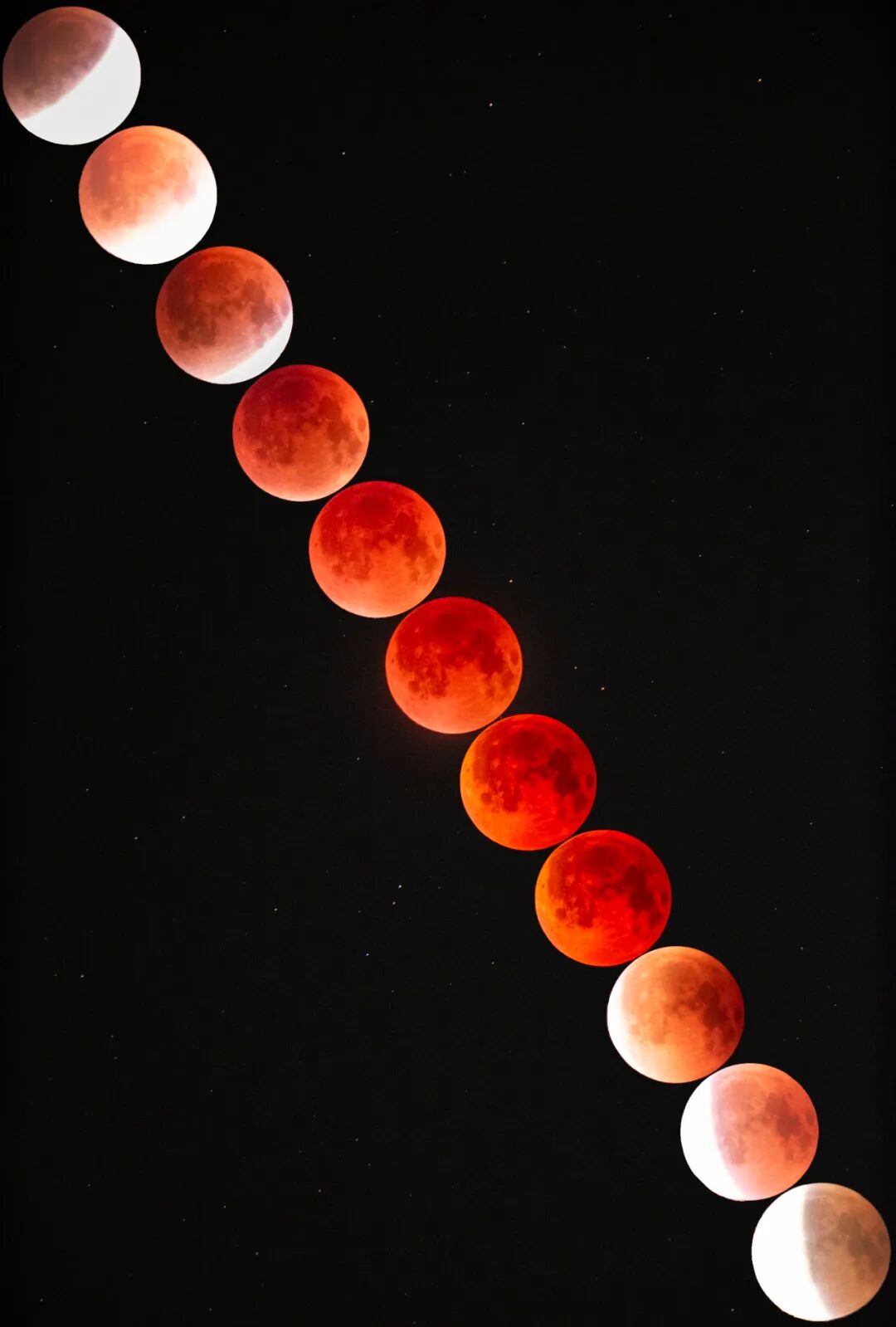 3. 拍摄:可以使用专业相机或手机,对月食进行拍摄。延时拍摄,可以还原整个月食的全过程,体现天象之神奇。不做延时拍摄的,也建议针对各节段的月亮形态进行分别拍摄。