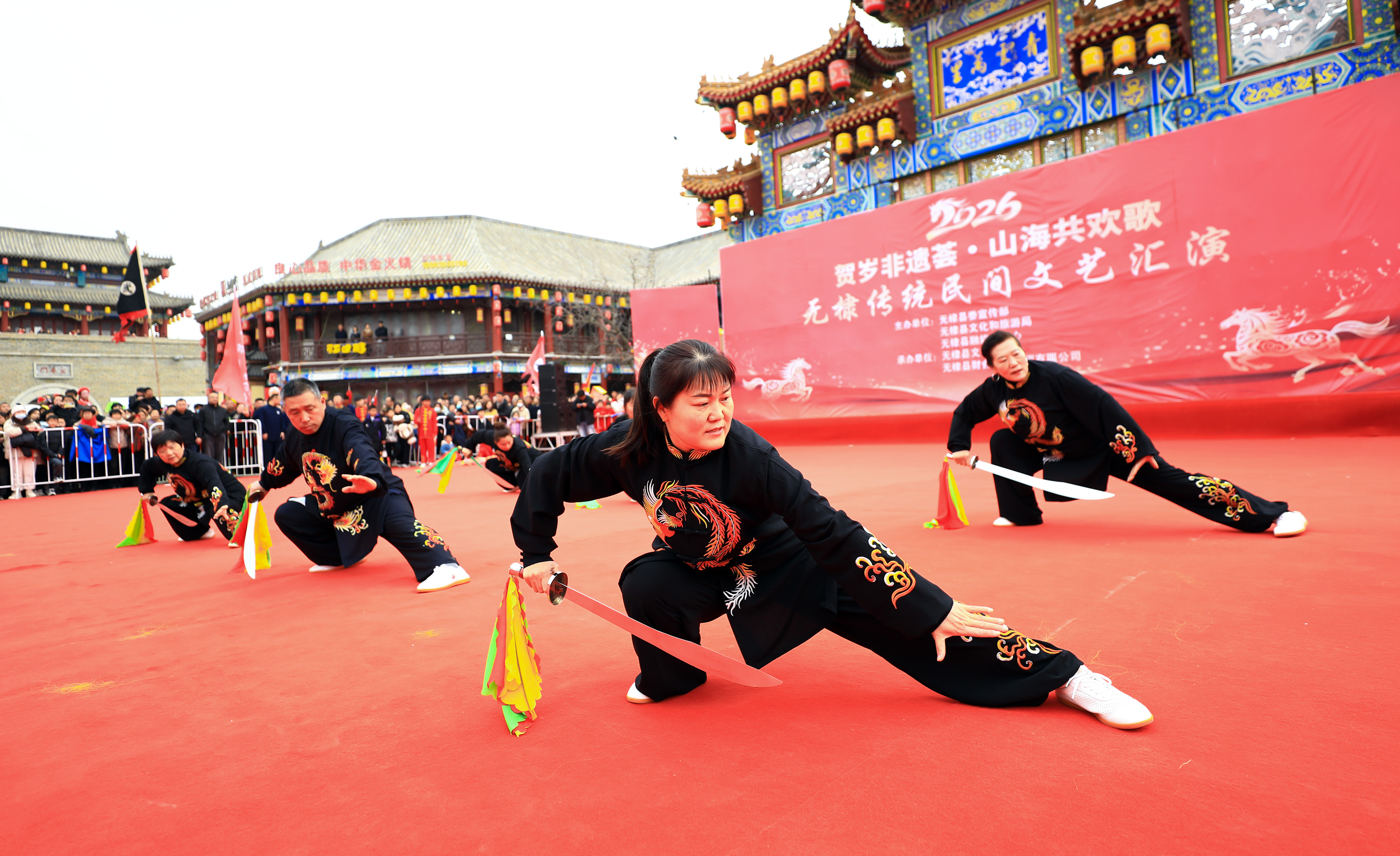 2月25日,无棣县传统民间文艺汇演“贺岁非遗荟·山海共欢歌”火热开赛,来自全县各镇街的20支秧歌、武术等文艺代表队齐聚无棣古城,欢腾的锣鼓、翻飞的彩扇、诙谐的表演,为广大群众献上了一份年味十足的“文化饕餮盛宴”。